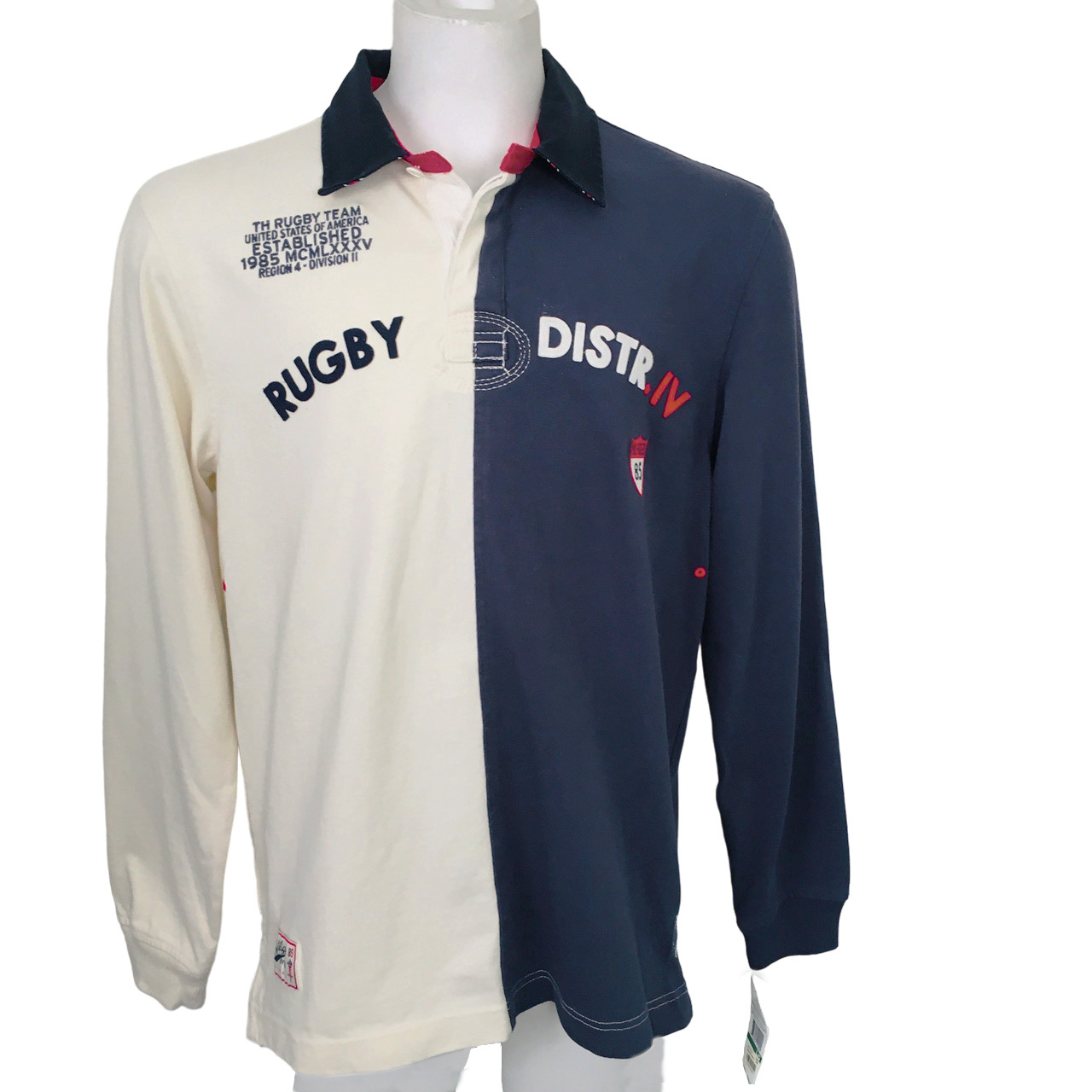 NEW Vintage Tommy Hilfiger Rugby Shirt! Blue & Creme Colorblock USA Cool Stripes