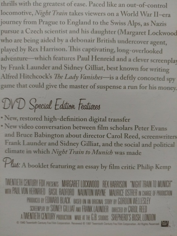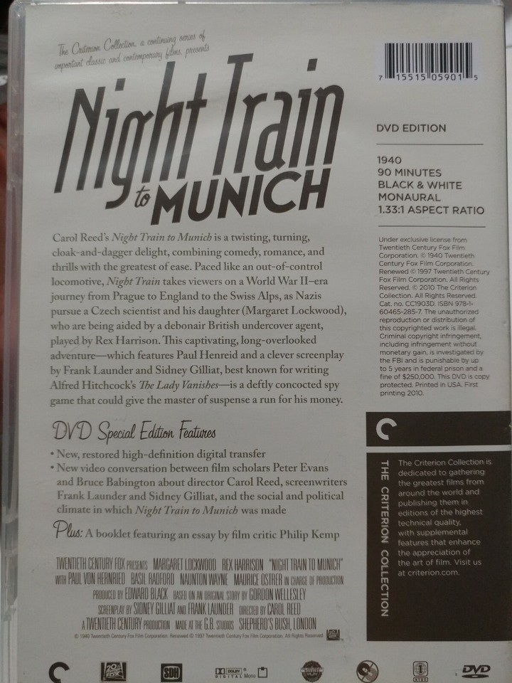 Night Train to Munich (DVD, 2010) The Criterion Collection