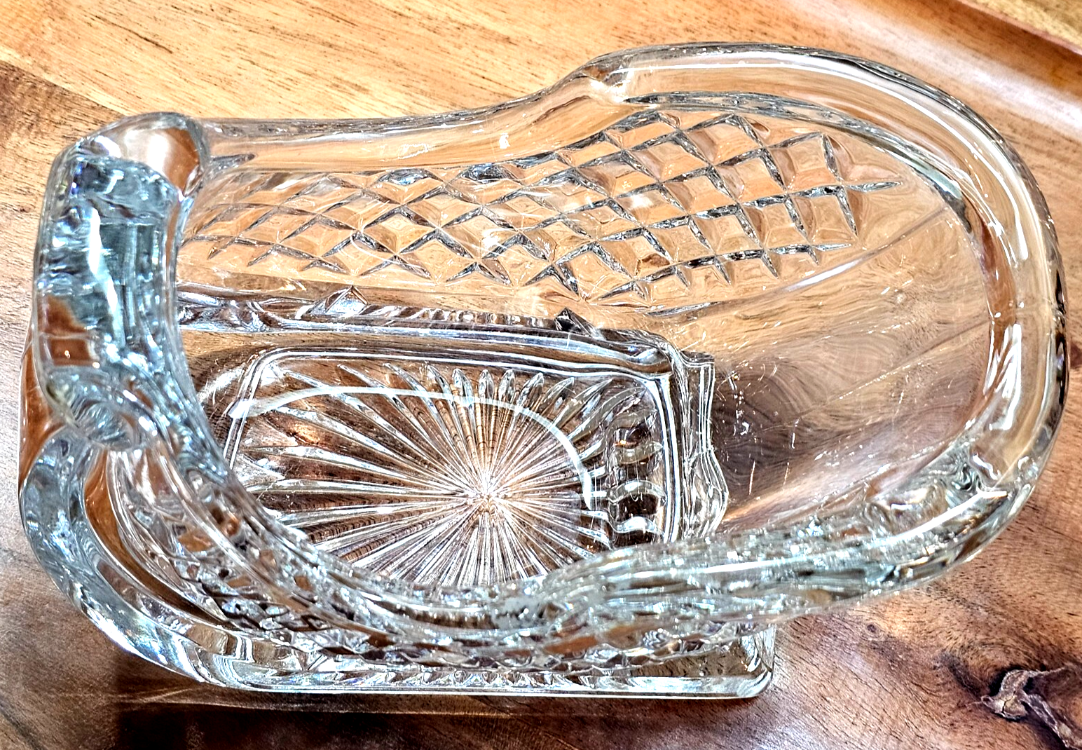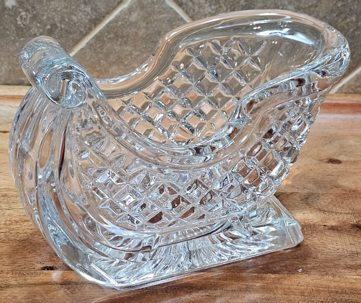 Crystal Santa Sleigh Heavy Lead Crystal Figurine Christmas 7" Vase/Candy Dish