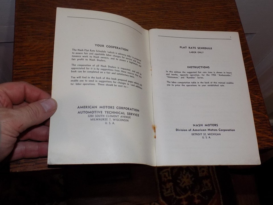 Vintage 1956 Nash American Motors Corp. Flat rate Schedule Booklet