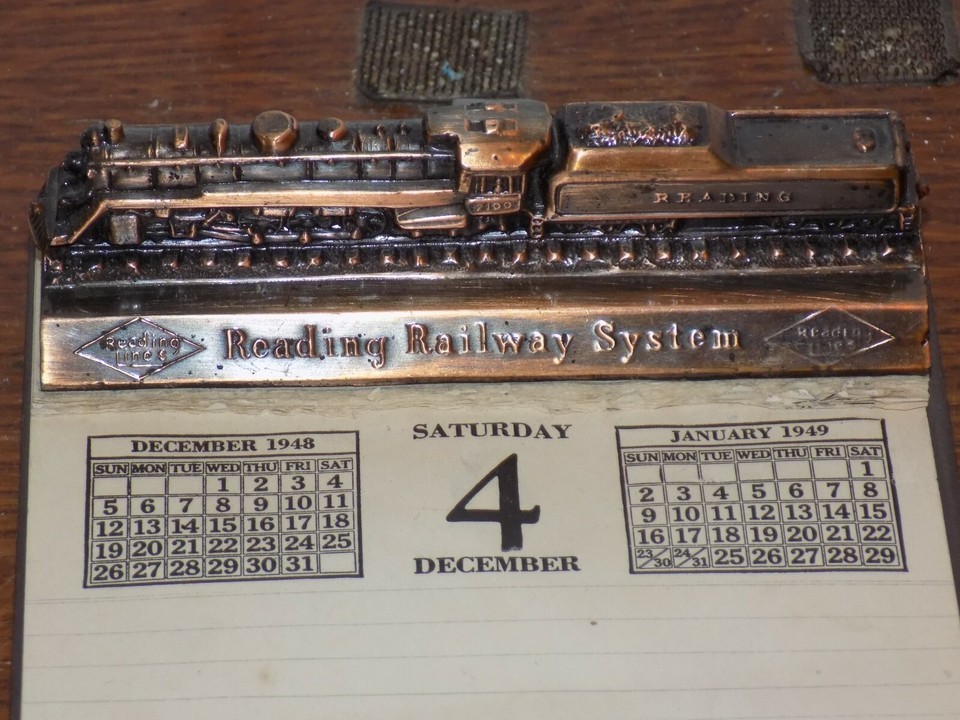 Vintage 1948-49 Reading Railway System Calendar Pad w/ Metal Train Header