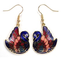 Gold Plated Cloisonne Swan Earrings Blue and 48 similar items