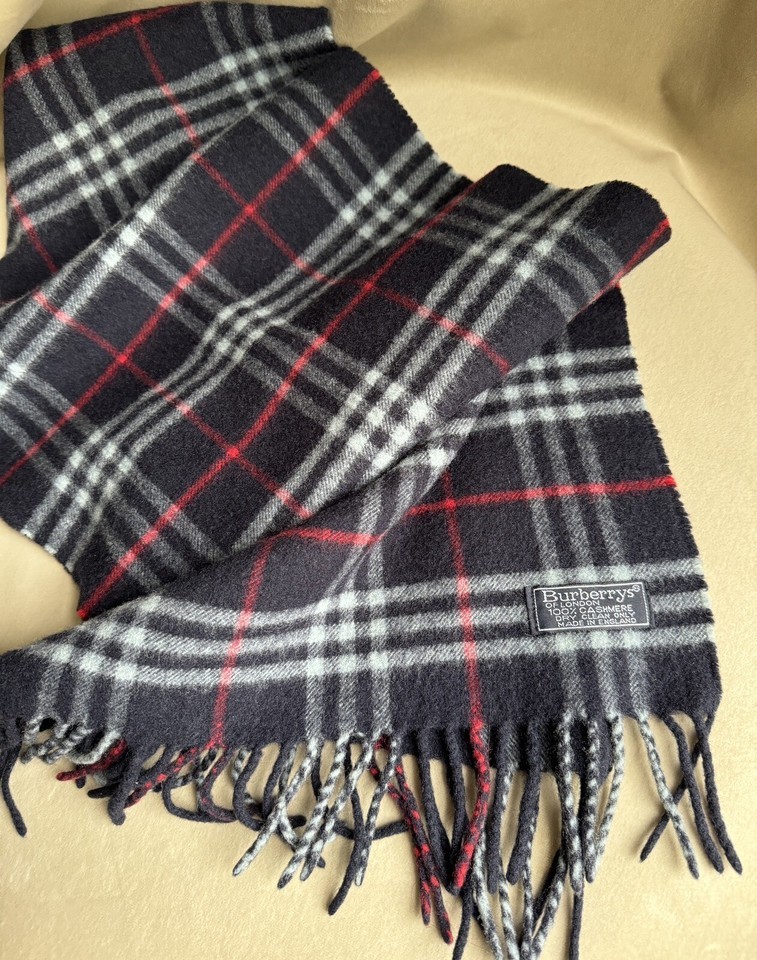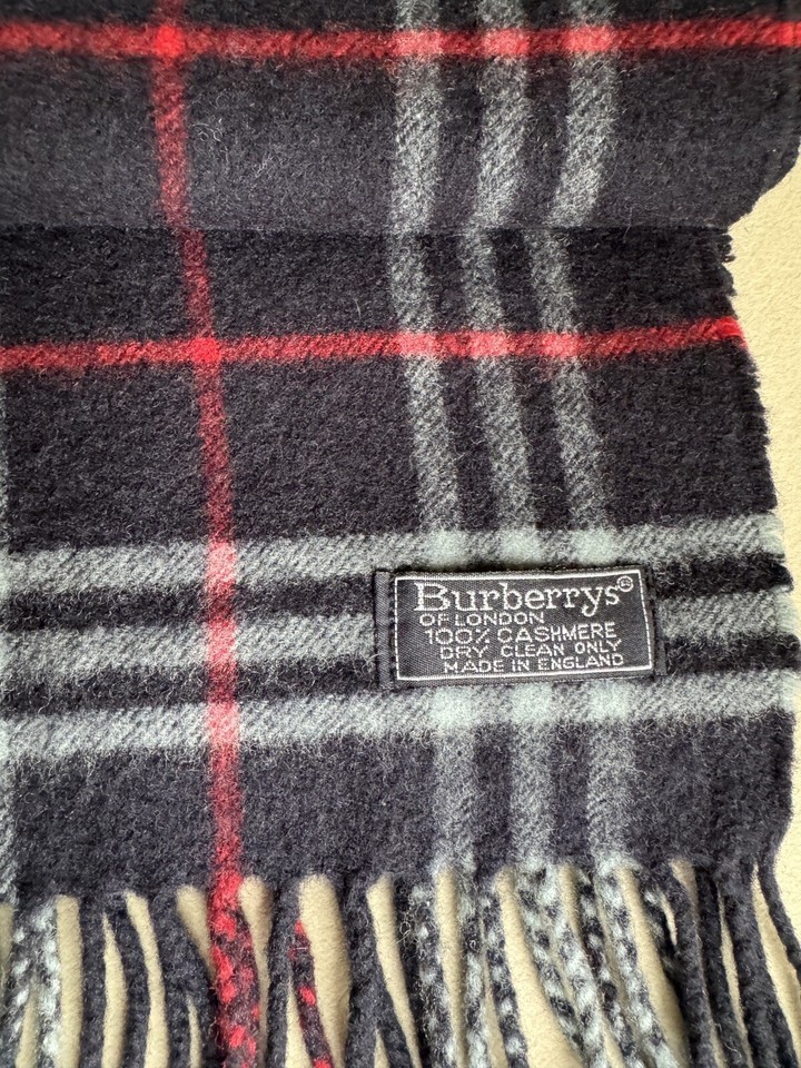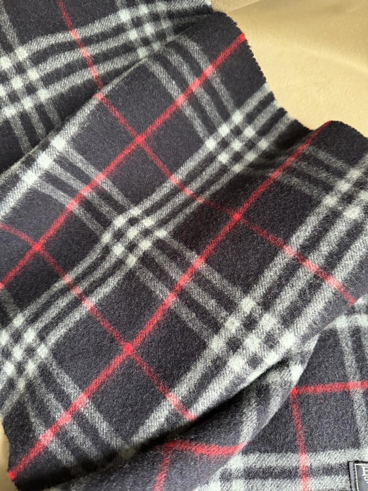Burberrys Scarf Blue Red Plaid Fringe Cashmere