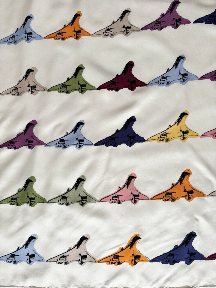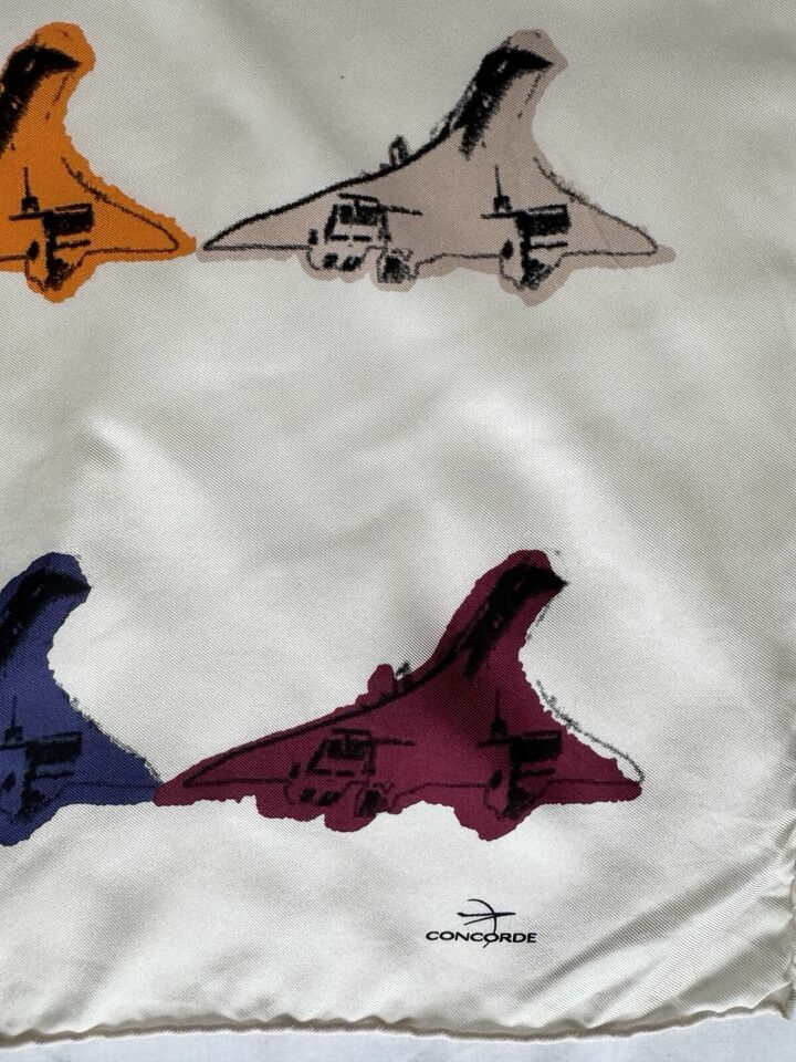 Vintage Air France Concord Large White/ Multicolor Silk Scarf