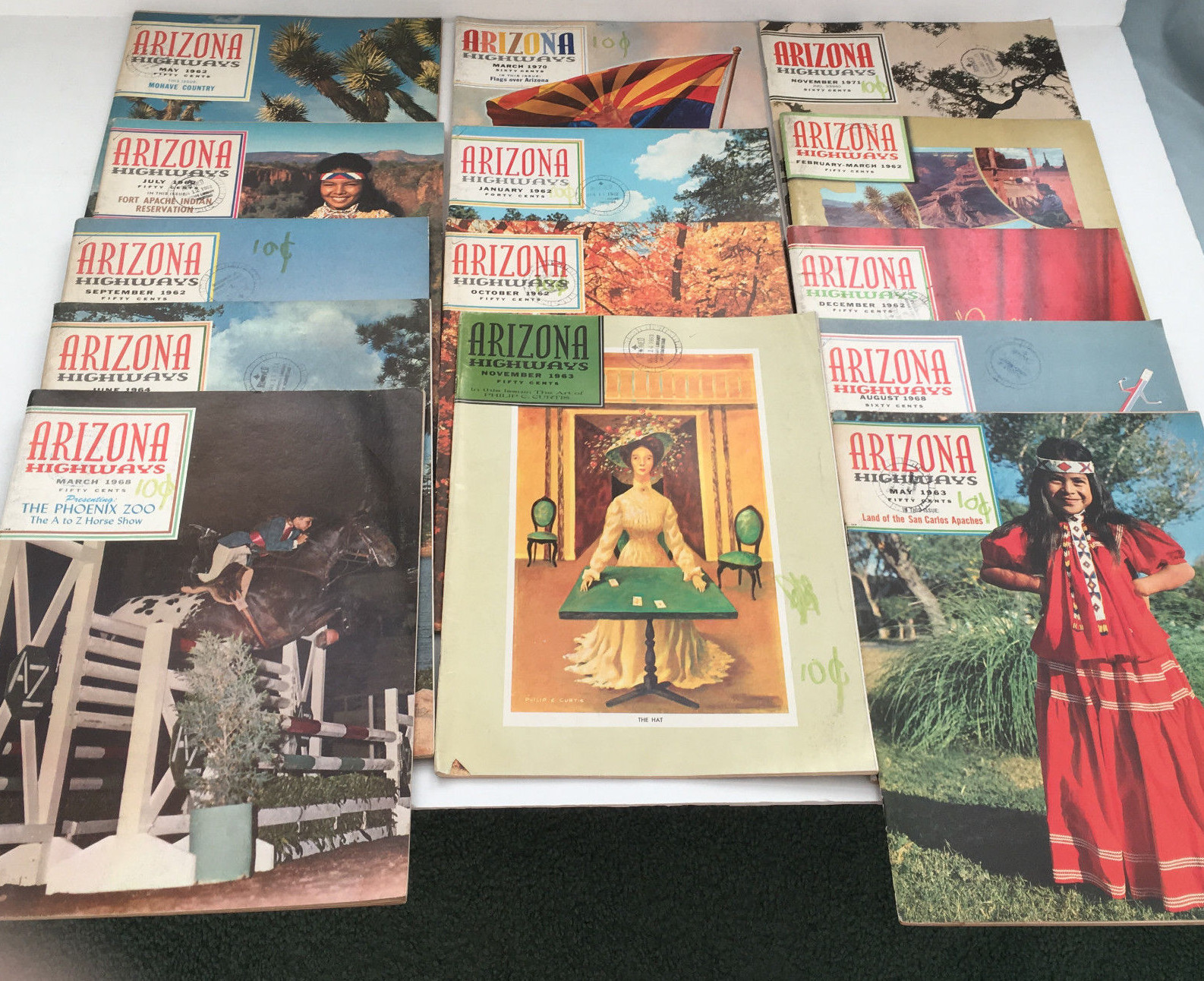 Vintage Arizona highways 14 back issue lot from 1962 - 1971 south west history