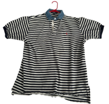Vintage Ralph Lauren Polo Shirt Mens L Blue Denim Collar Striped Red Pony Sailor