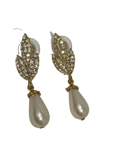 Goldtone Rhinestone & Faux Pearl Teardrop and 48 similar items
