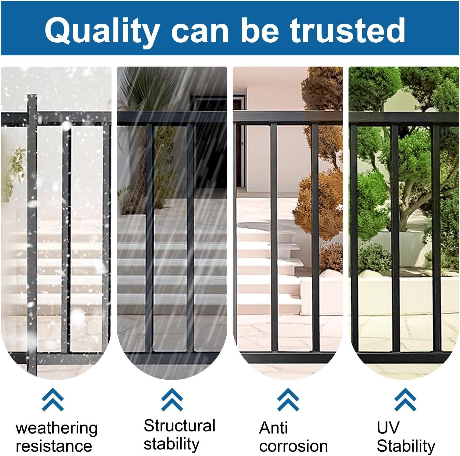 High quality guardrail: The guardrail is made of high-quality materials and has a glossy powder coating finish. Fashionable and aesthetically pleasing. Waterproof and rust proof. Can be used outdoors for a long time.