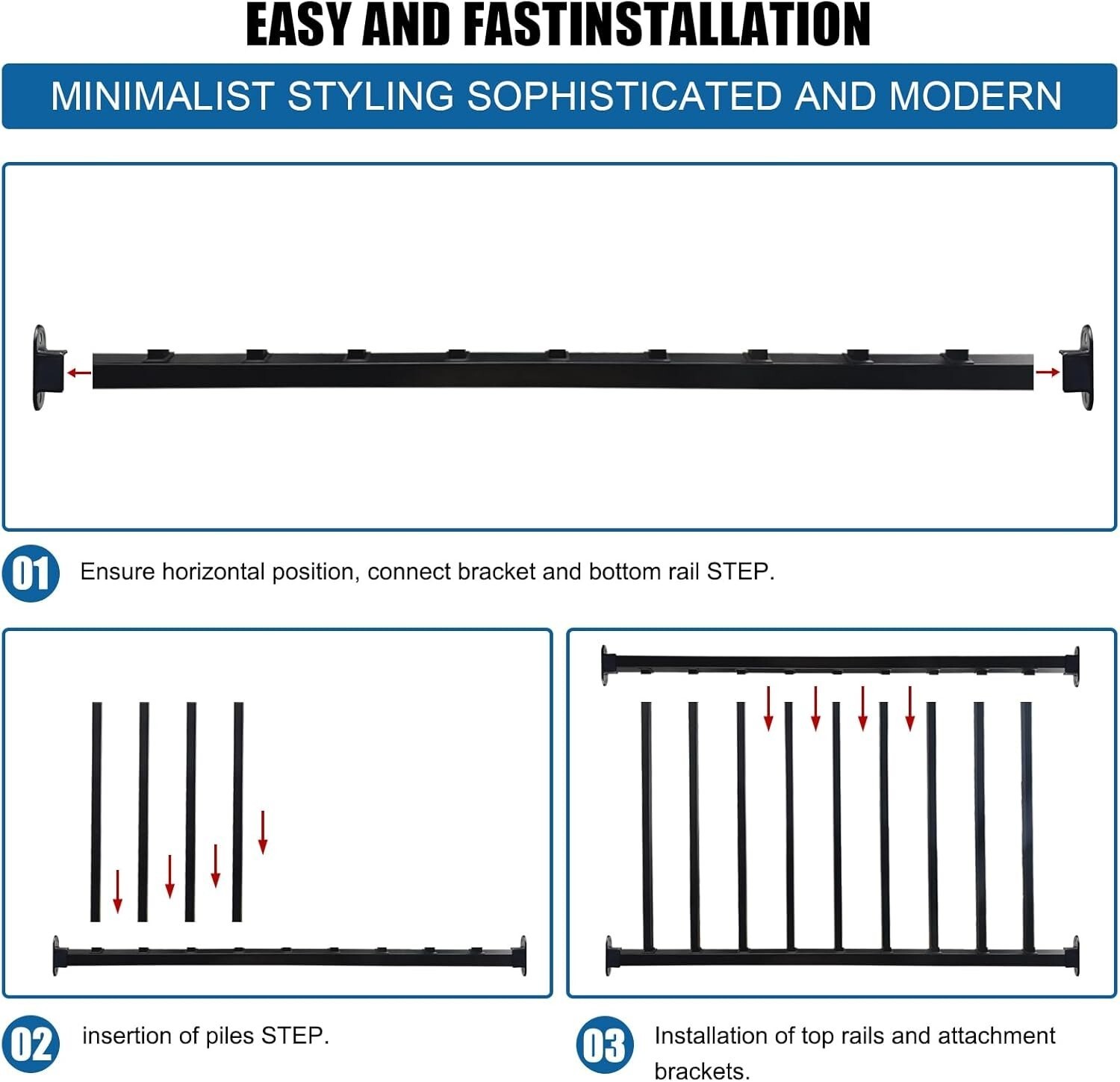 Fashionable and sturdy : This versatile guard rail kit can be easily attached to various types of posts, including metal, vinyl, concrete .The brackets and railings have a strong grip to protect the safety of family members. It also adds a fashionable appearance to the garden