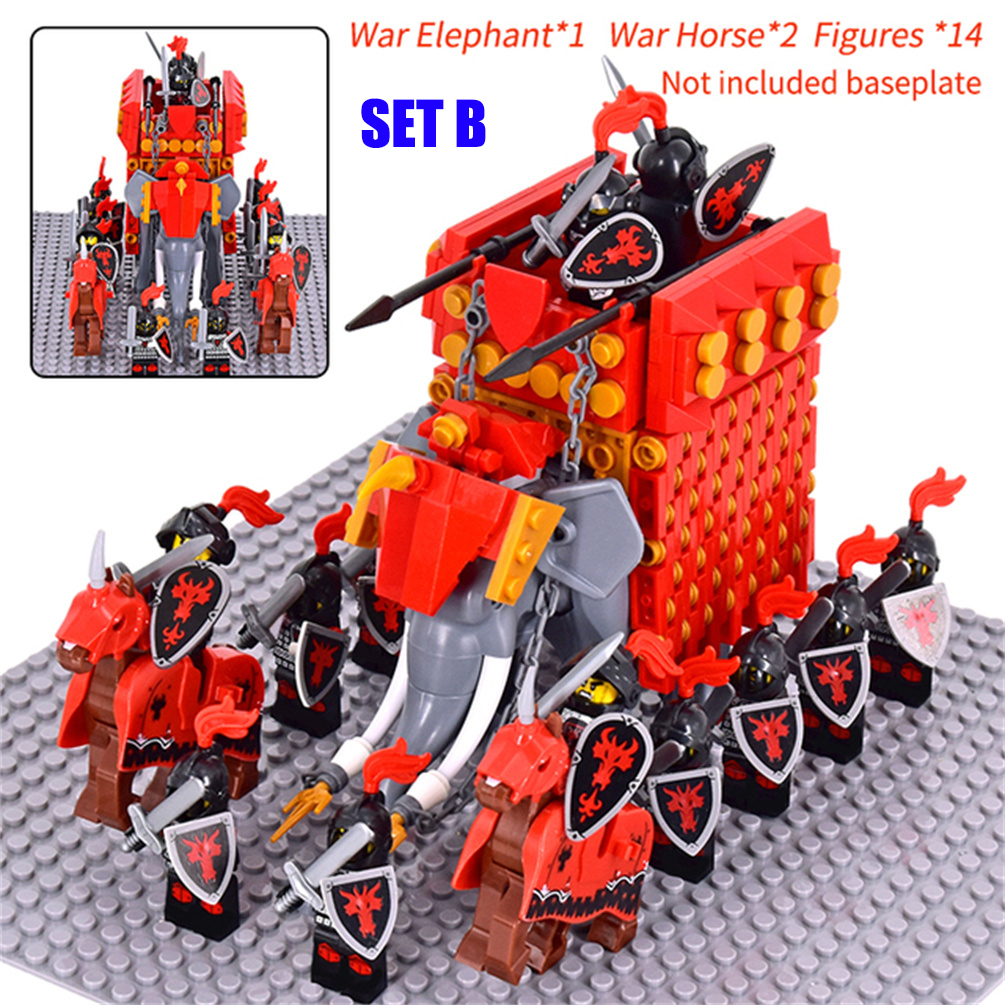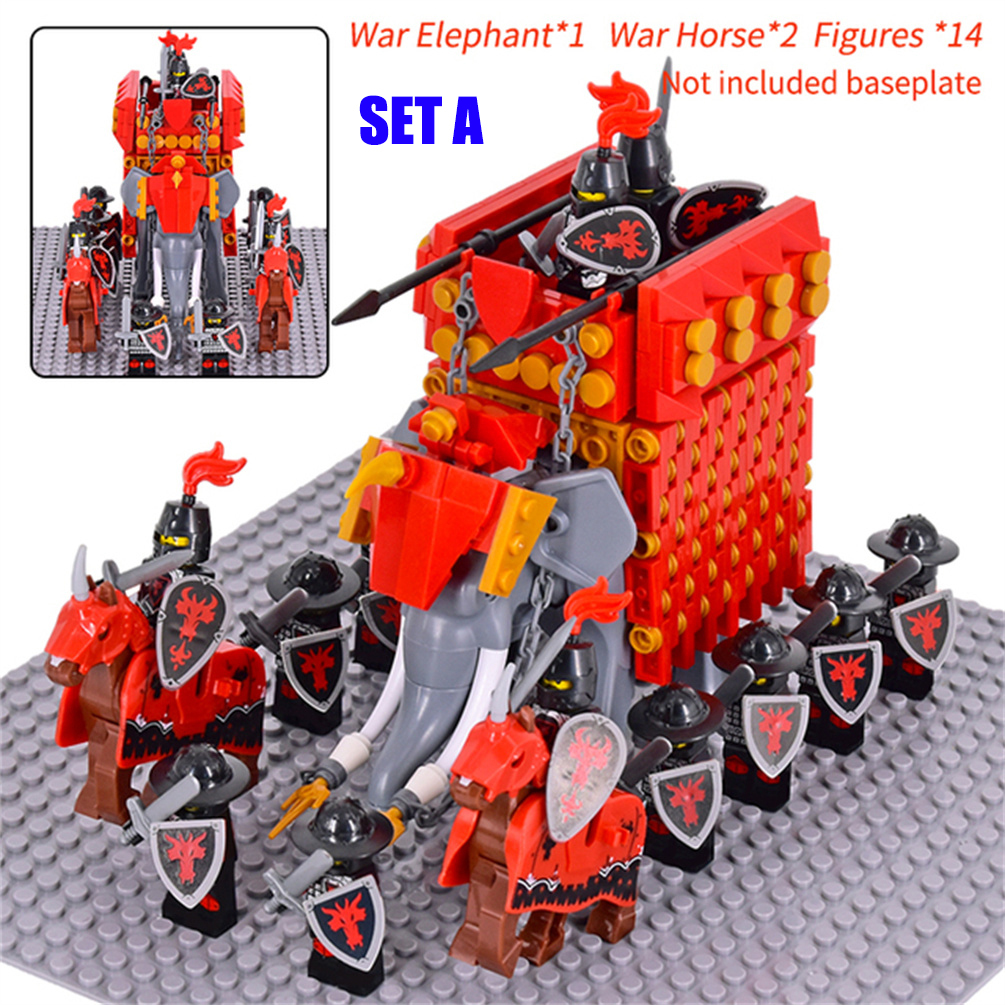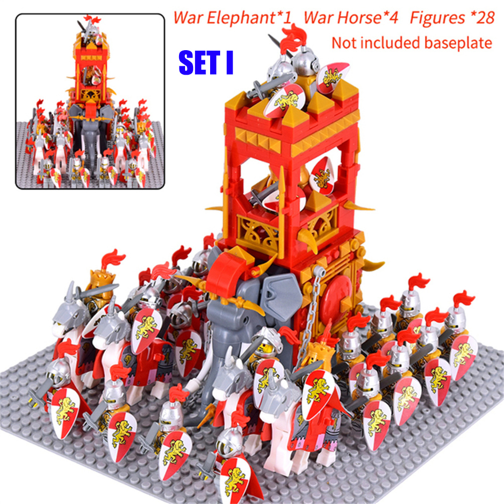 Castle Knights with War Elephant Collectible Mini Brick Figures Set