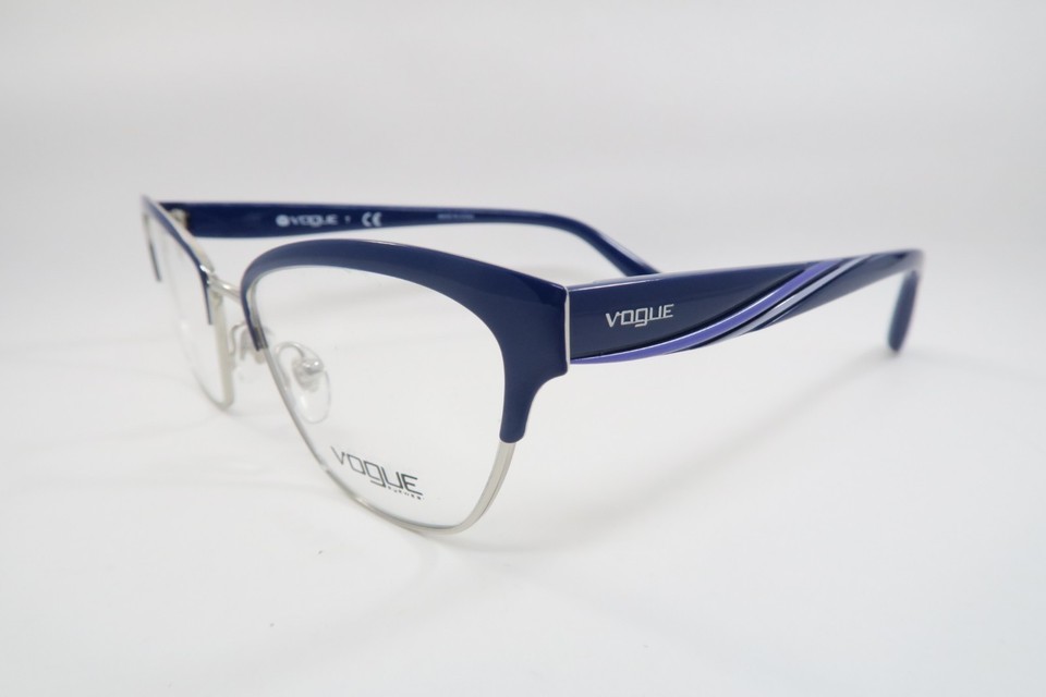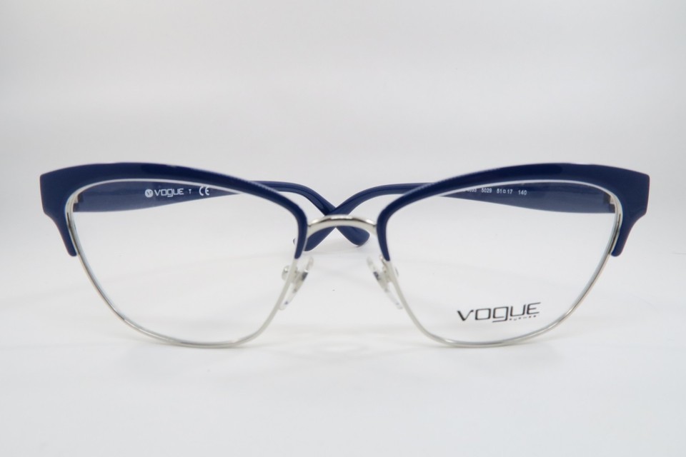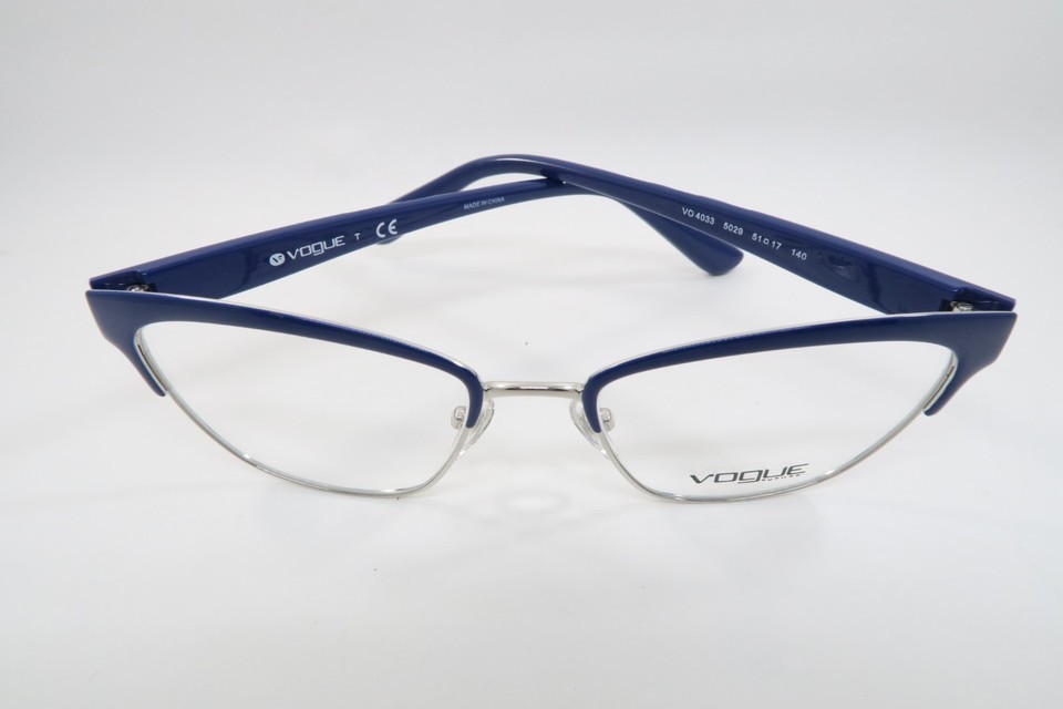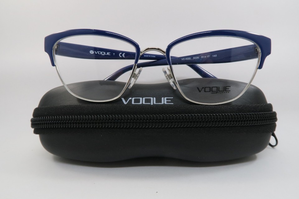 Vogue VO 4033 5029 Shiny Blue on Silver New Authentic Eyeglasses 51/17/140mm with Case