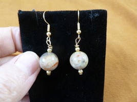 (internal #DP1-20c) This is a beautiful pair of Genuine Dinosaur poop dangle earrings made with one 12mm bead and gold alloy bead accents, on gold alloy hypoallergenic French wires.