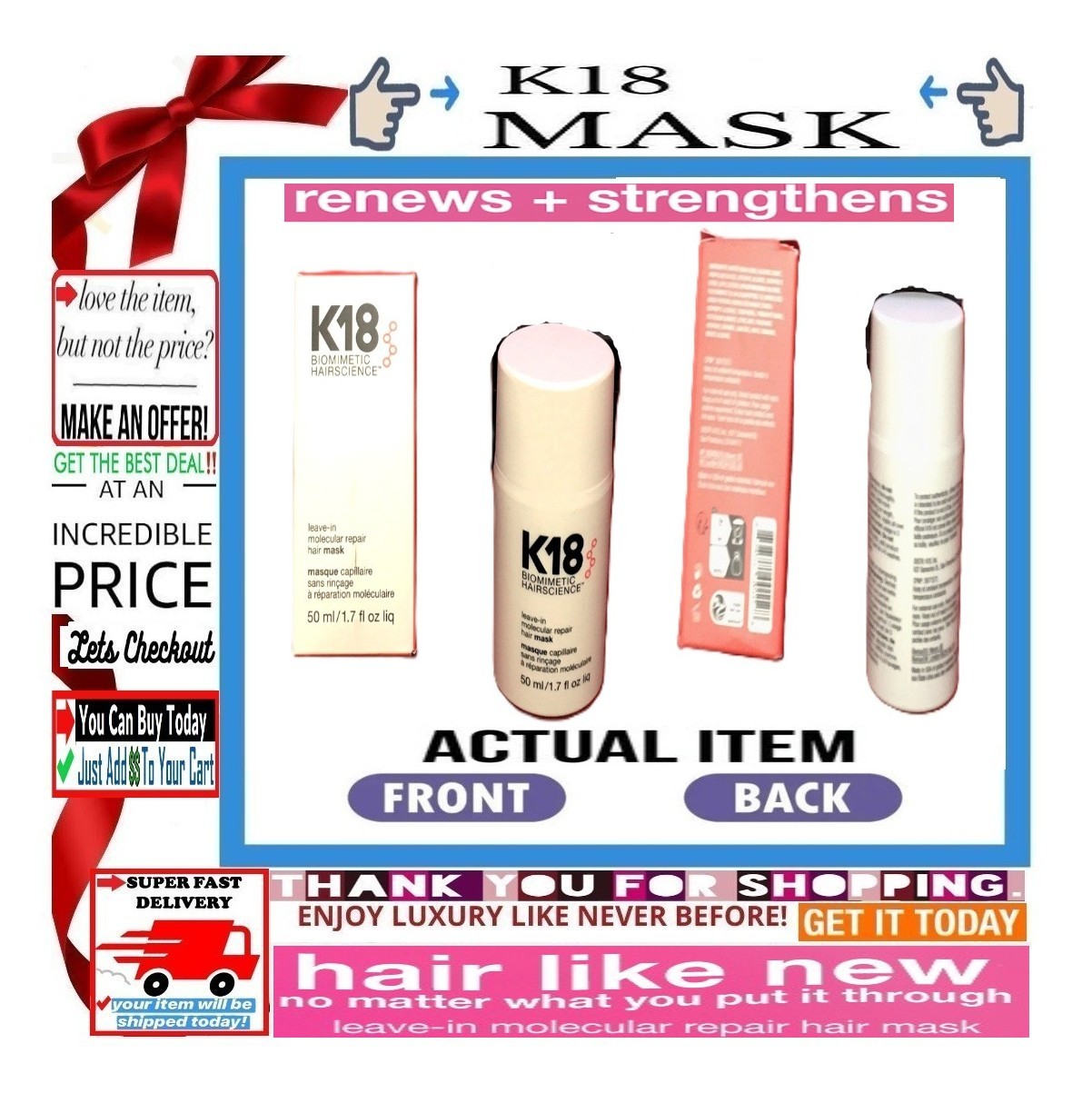 ?S??A??L??E? K18 Leave In?? HAIR MASK ?BUY NOW??? ?Color: White ??Size: Full Size 50 ml ?Material: Plastic? ?? k18 Molecular Repair HAIR MASK ?? ???CONDITION??? ?NWTGS ??/Brand New GEM???/Original Box?? ?ITEM Fully Inspected for Defects Everything is Great? ?Please Refer to Photos for Desc?