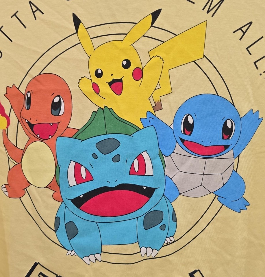 Pokémon Group Shot Gotta Catch 'Em All Cute Youth T-Shirt Size XL Color Yellow