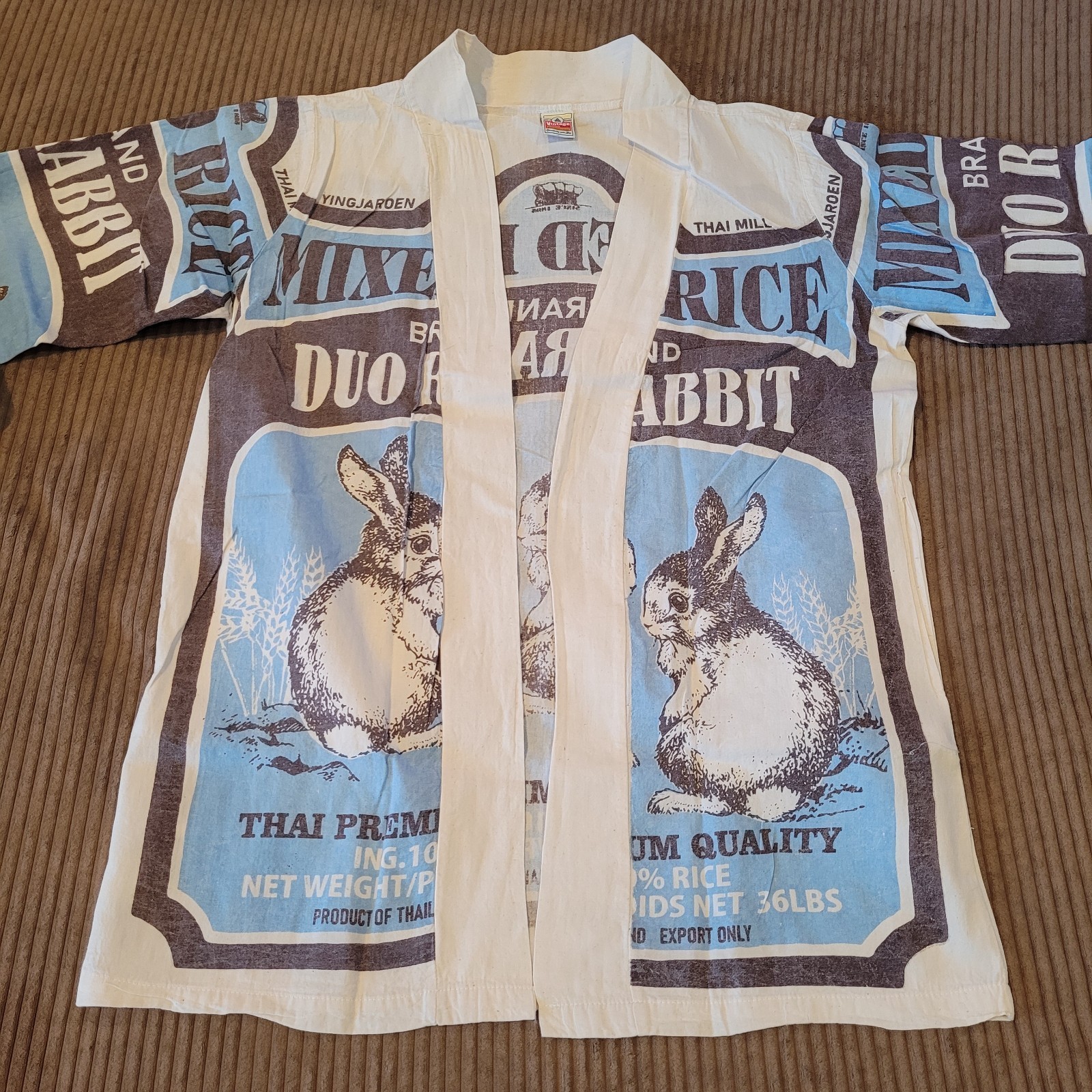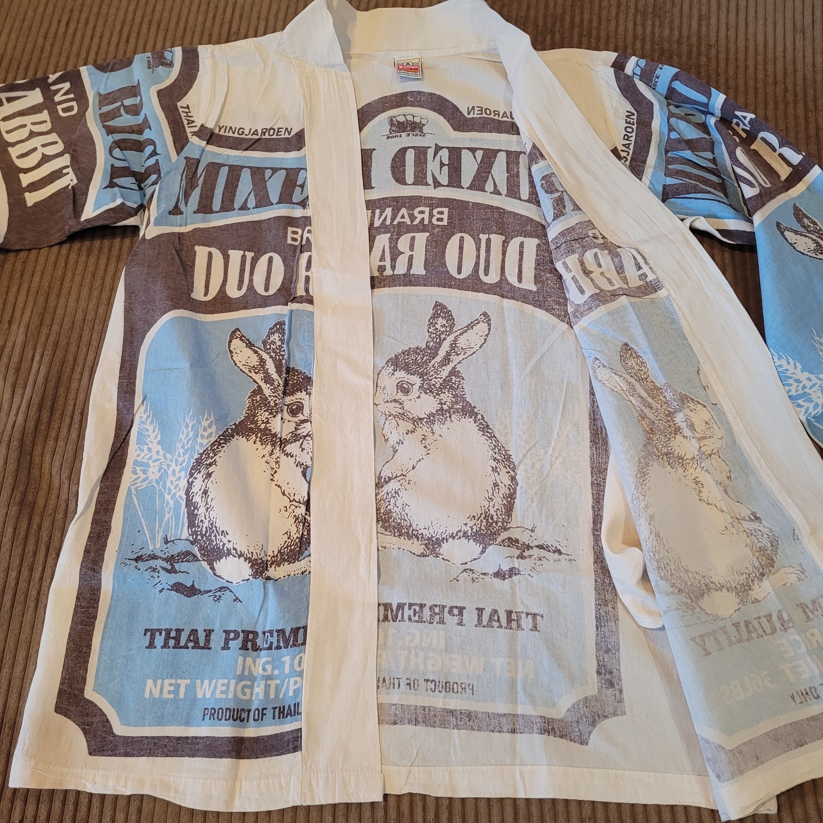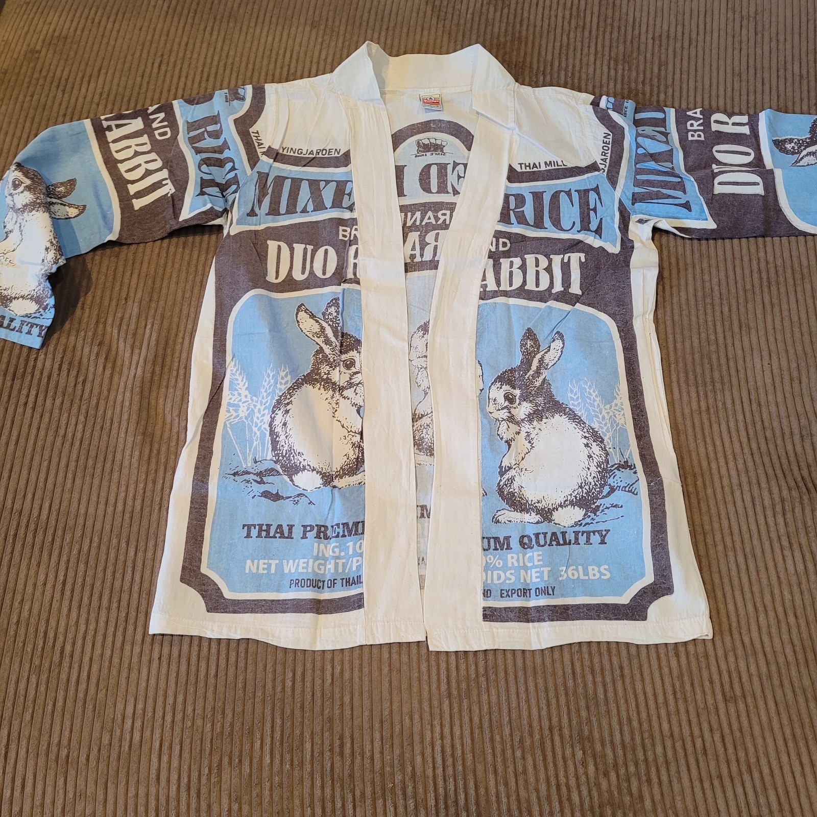 Flour Sack BUNNY Jacket Blazer Garden Hippie Cottage Core Boho One Size Relaxed