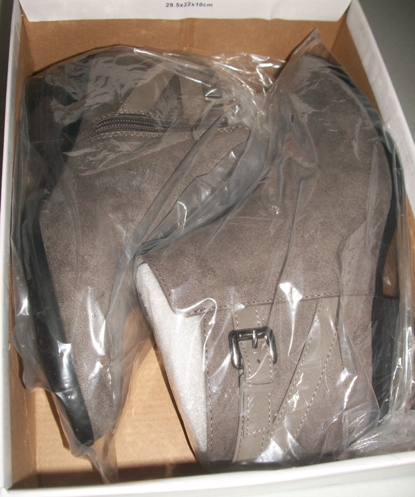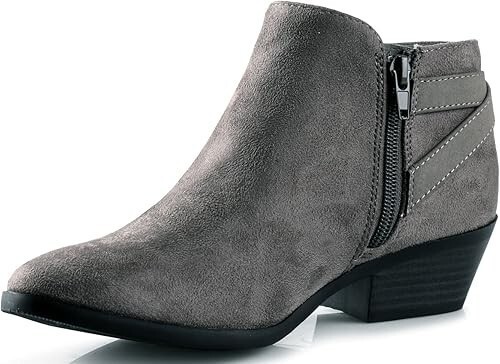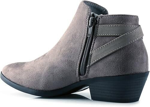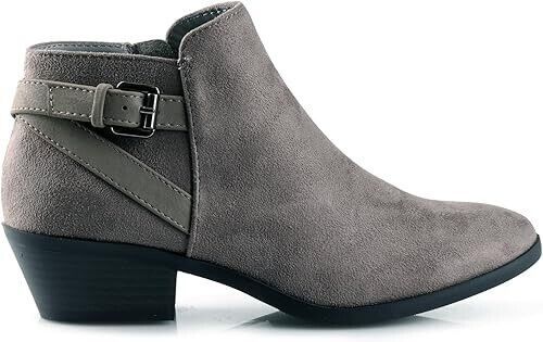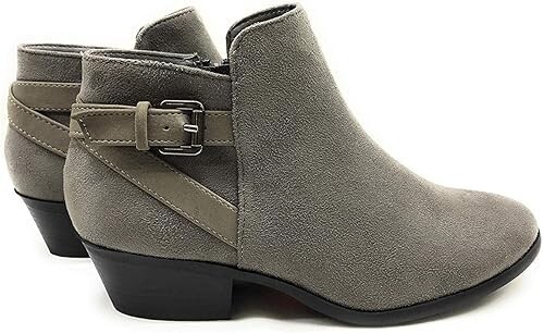 SODA NIB Women's Almond Toe CHOYA Buckles Stacked Heel Ankle Boots Gray