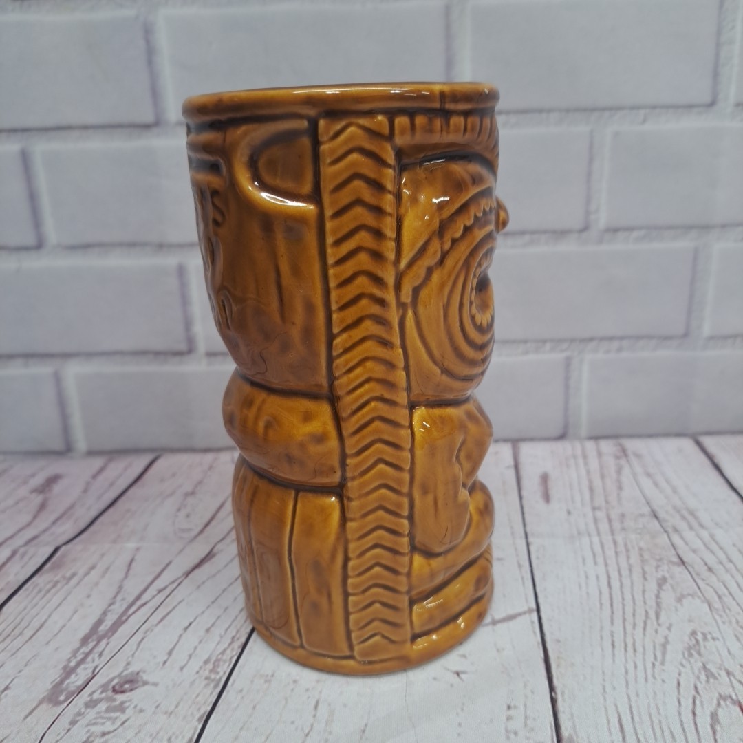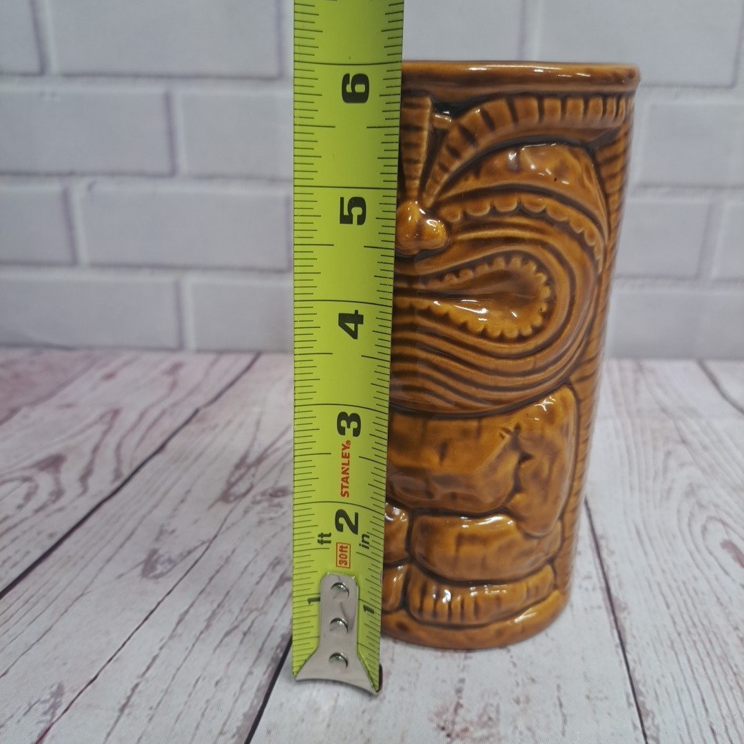 The Germaine's Luau Hawaii Tiki 2010 KC Ceramic Mug Cup is a collectible item featuring a Hawaiian cultural theme. The mug showcases a tropical design with a brown color scheme, perfect for fans of Hawaiian culture or those who appreciate unique and exotic collectibles. This ceramic cup is a fun and decorative piece that would make a great addition to any collection or as a stylish drinkware item.