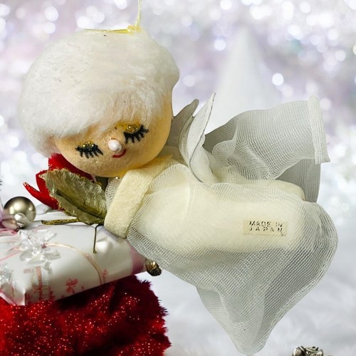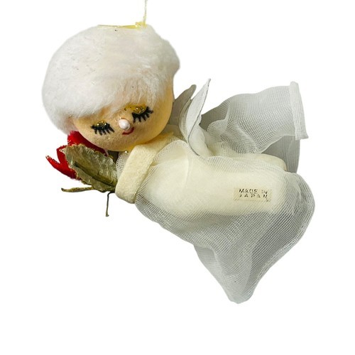 Vtg Styrofoam MCM Flying Toile Netting Angel Rose Christmas Tree Ornament Japan