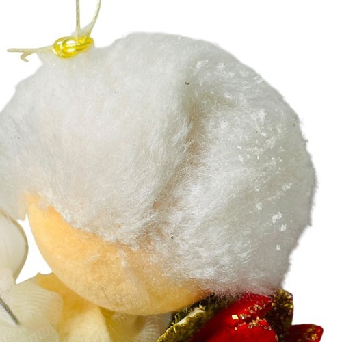 Add a touch of vintage charm to your Christmas tree with this delicate Styrofoam MCM Flying Toile Netting Angel ornament. Hand-painted and intricately designed, this angel is adorned with roses, adding a romantic and timeless feel to your holiday decor. The ornament hangs gracefully on your tree, casting a whimsical and nostalgic vibe that is perfect for the festive season.