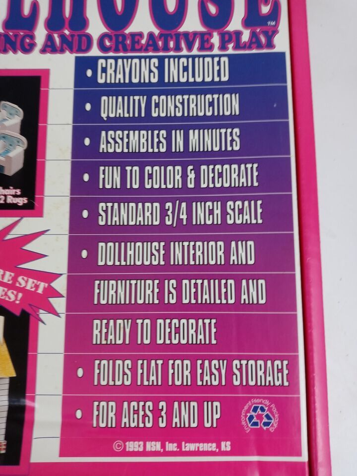 Vintage 1993 Kits For Kids Dollhouse For Coloring And Creative Play Made In USA.