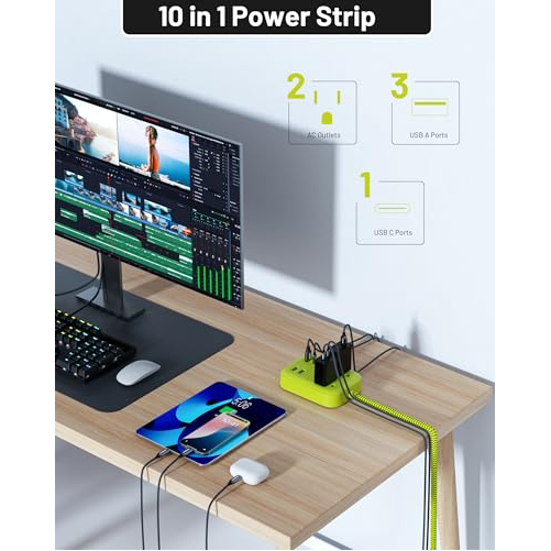 OMNIBARPLUS 6 Ft Power Strip Surge Protector - 2 Outlets 4 USB Ports (3 USB A), Maxpw Ultra Thin Flat Extension Cord Flat Plug, 1700 Joules, Desk Charging Station for Home Office Dorm (yellow-green)
