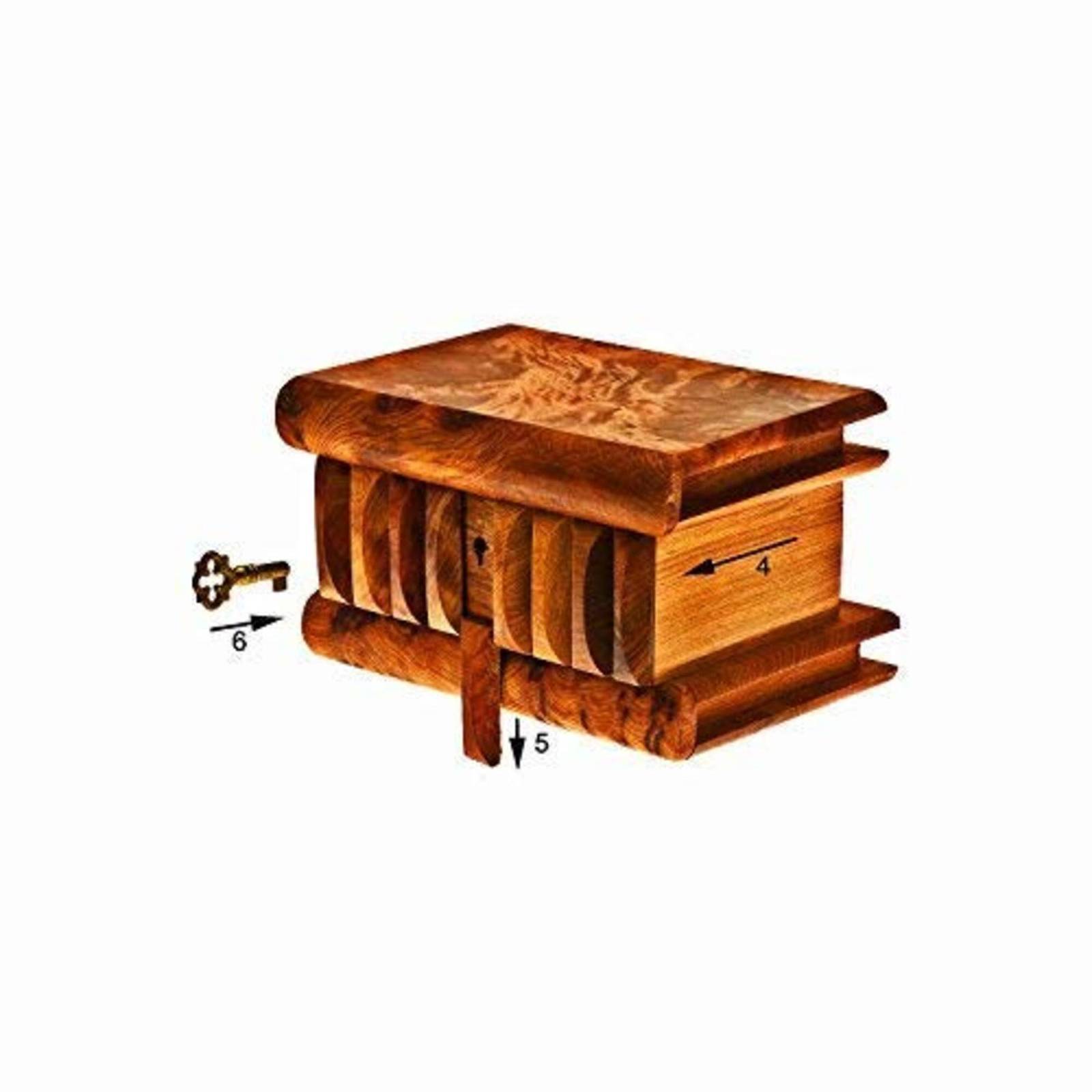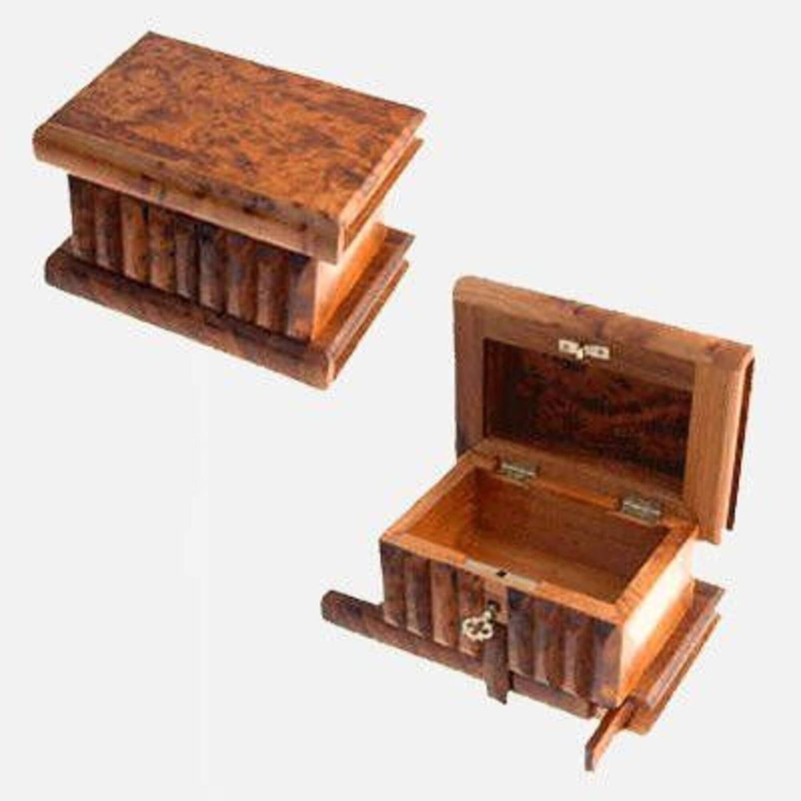 Traditional Moroccan Handicraft with the key and keyhole hidden behind 2 secret panels. Will intrigue everyone! This wooden mystery box is handmade in Morocco using skills passed down by generations of Atlas mountains craftsmen. It is a traditional Atlas-berber Mystery Box, carried by the berber villagers for generations because it has no obvious key or keyhole and therefore no way of getting to the objects inside