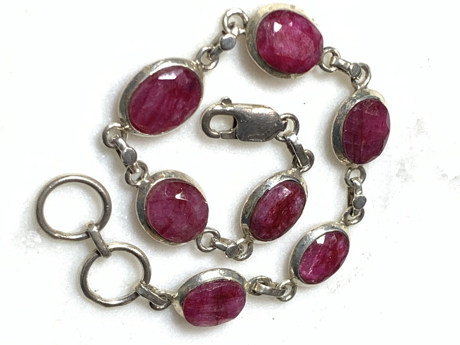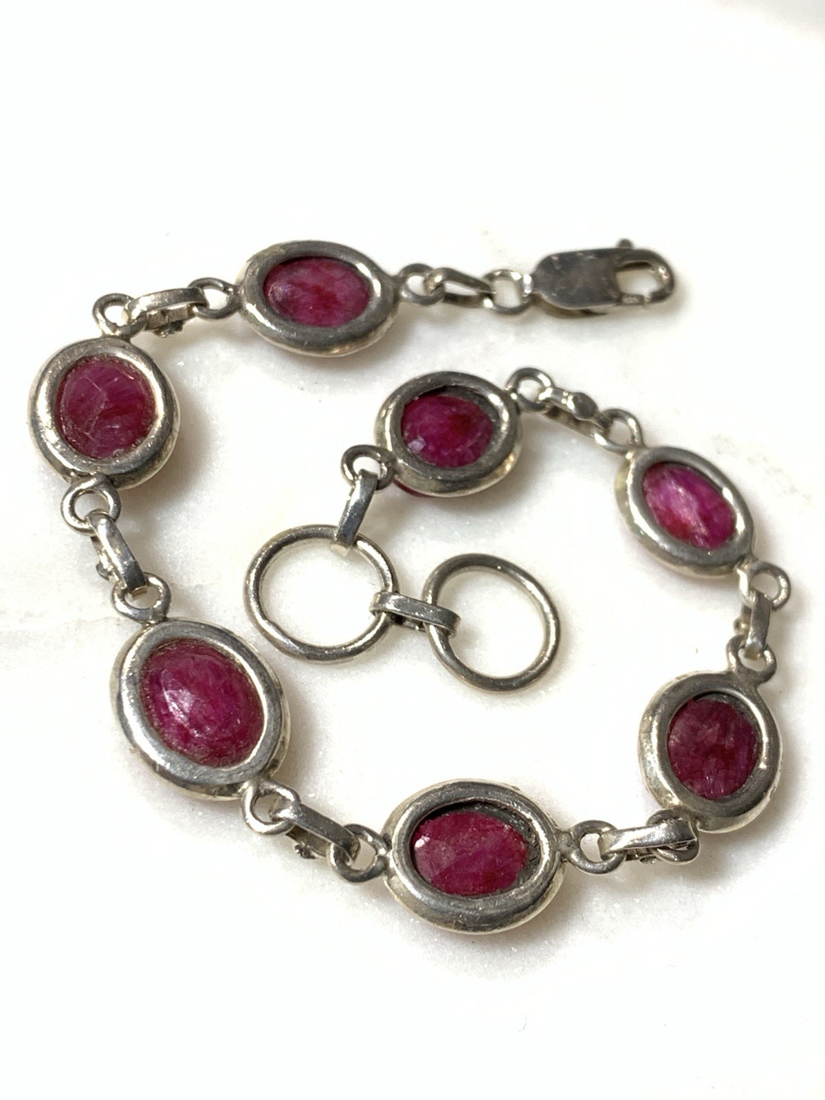 925 Sterling Silver Faceted Ruby Gemstone Handmade Bracelet 7”-7.5”