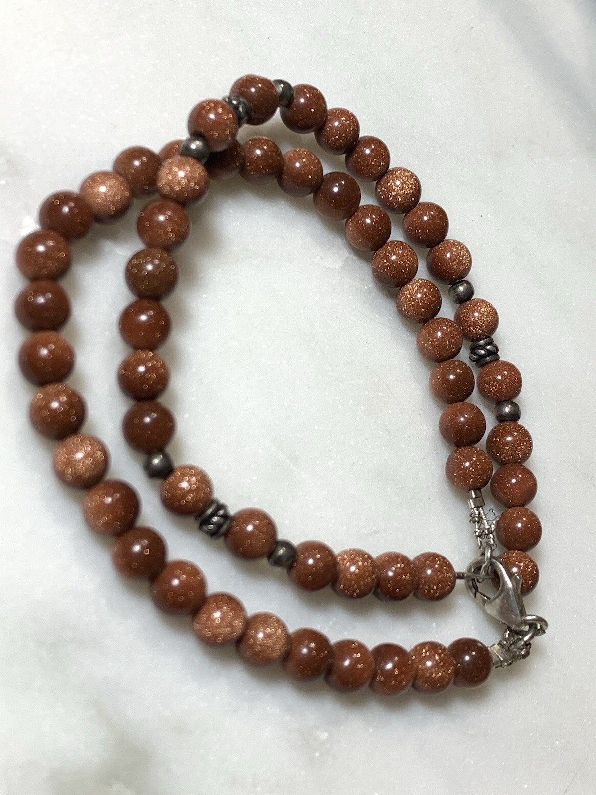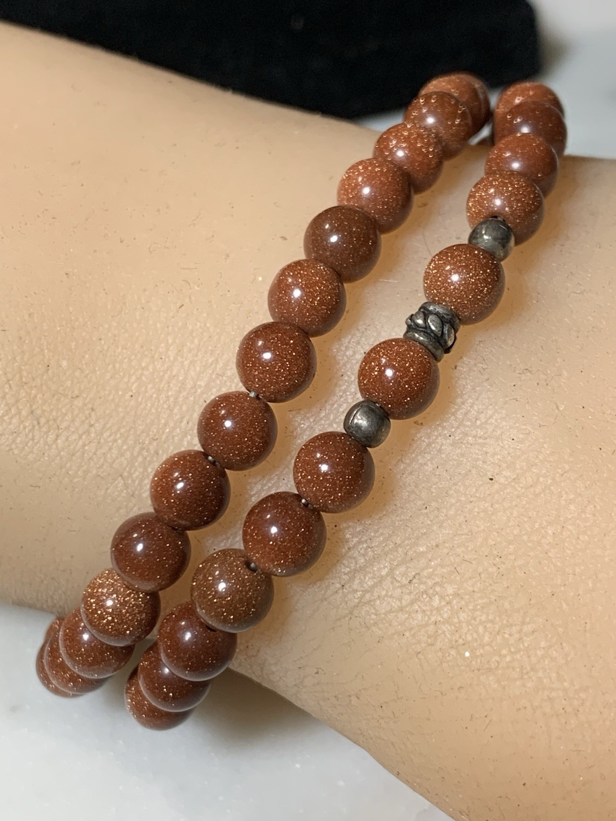 Sterling Silver Goldstone Beads Double Strand Bracelet 7.5?. Condition is Pre-owned. Shipped with USPS Ground Advantage.