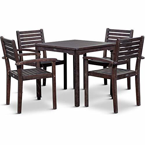 DTY Outdoor Living Leadville Square 5-Piece Eucalyptus Dining Set, Espresso Fini
