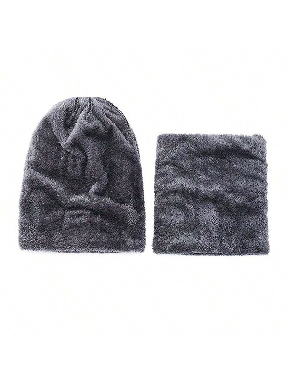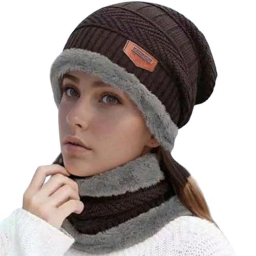 2piece women's solid color winter hat and scarf set, a soft, comfortable, windpr