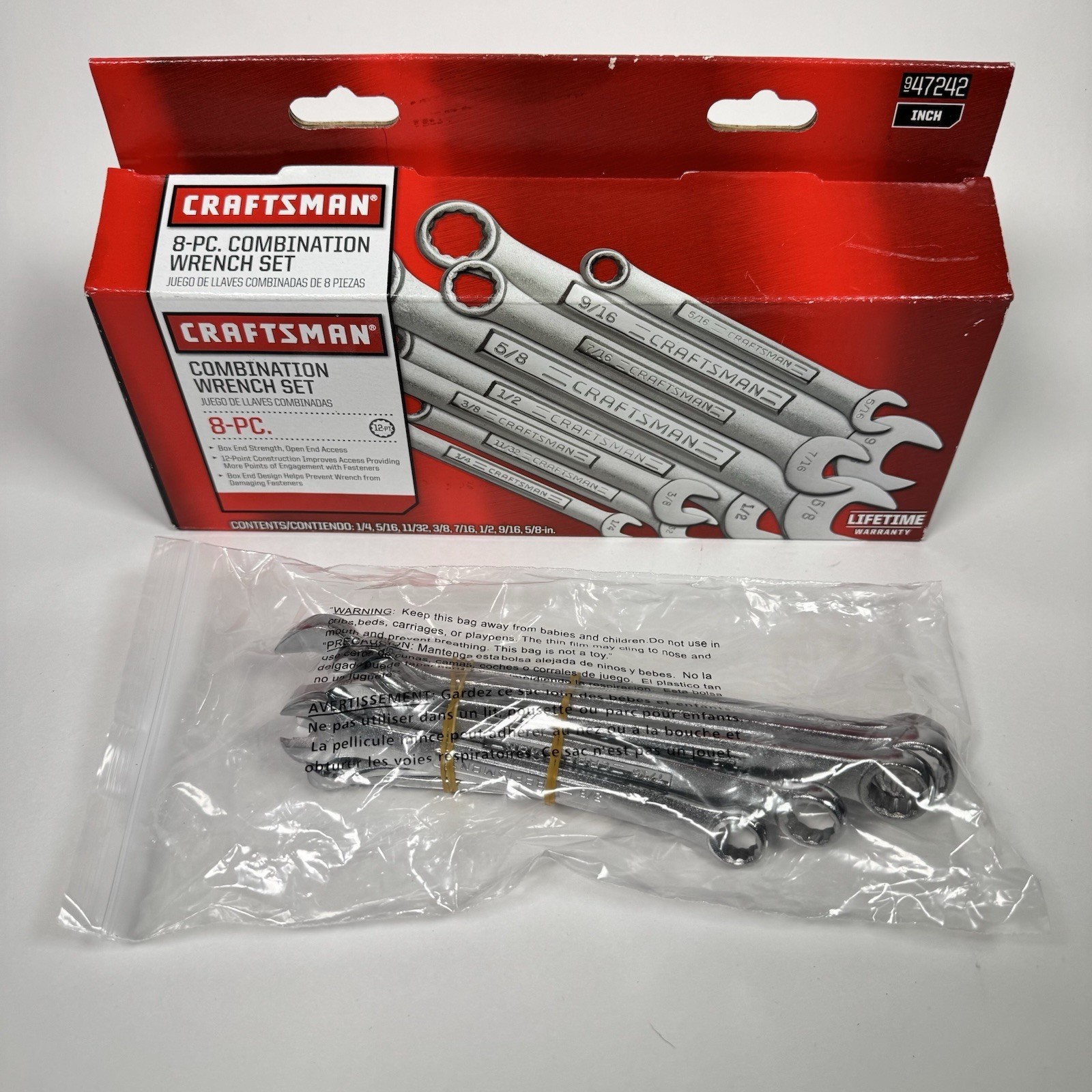 Sears Craftsman New Old Stock 8 Piece Sae Combination Wrench Set 47242 New