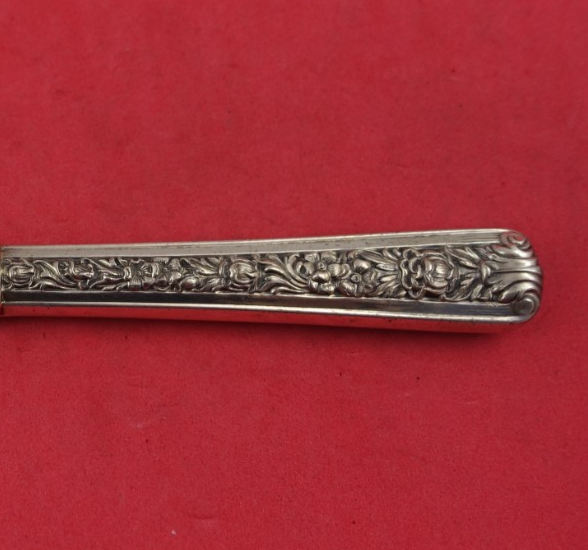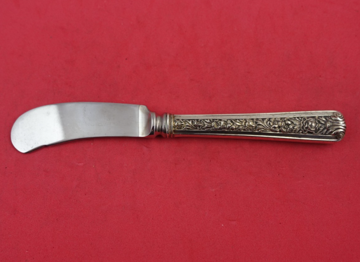 Sterling silver hollow handle with stainless paddle blade Butter Spreader 6" in the pattern Windsor Rose by Watson. It is not monogrammed and is in excellent condition.