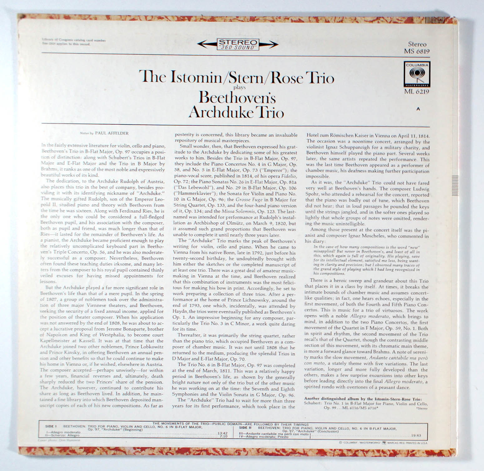 Istomin, Stern, Rose Trio - Beethoven's Archduke Trio (1966) Vinyl LP Isaac