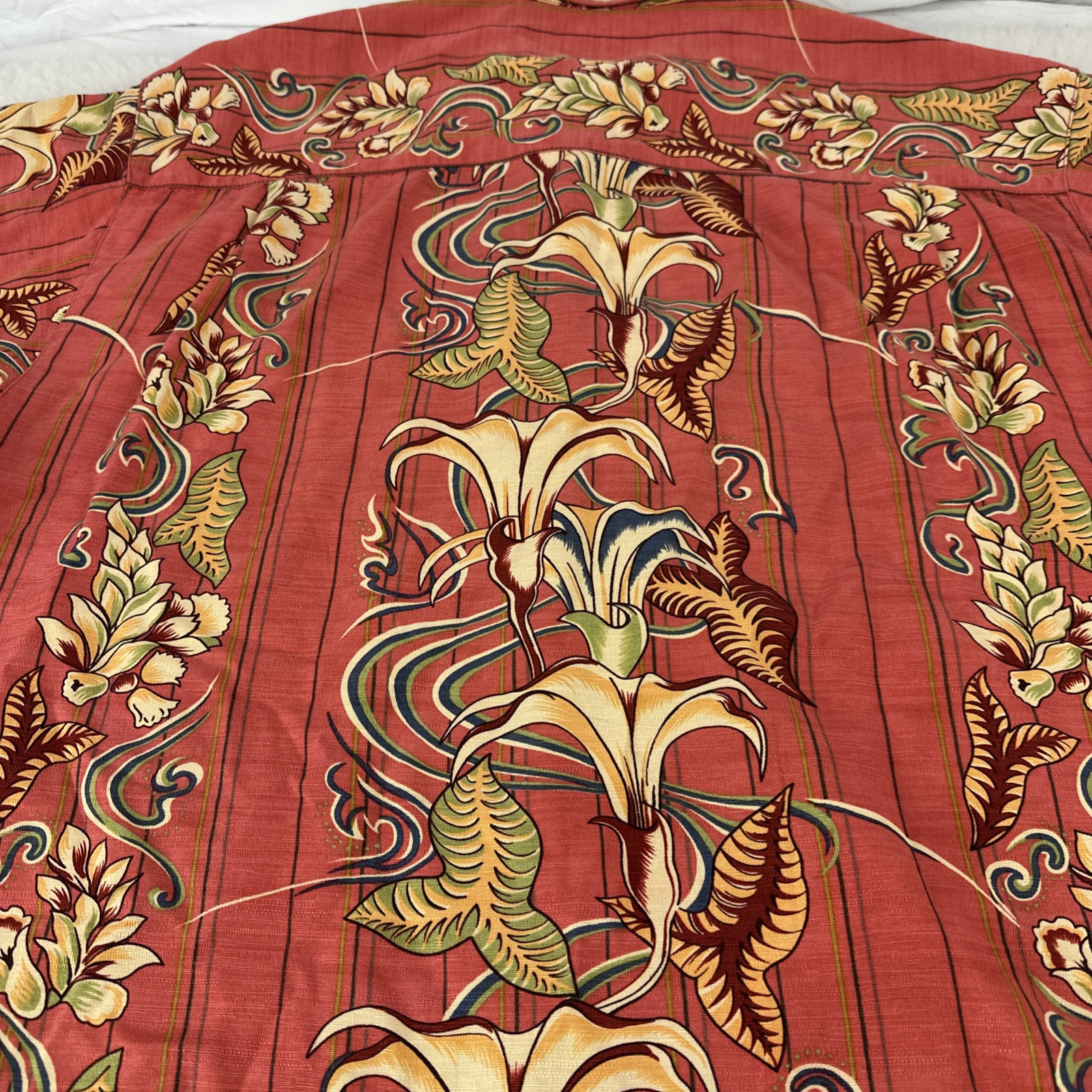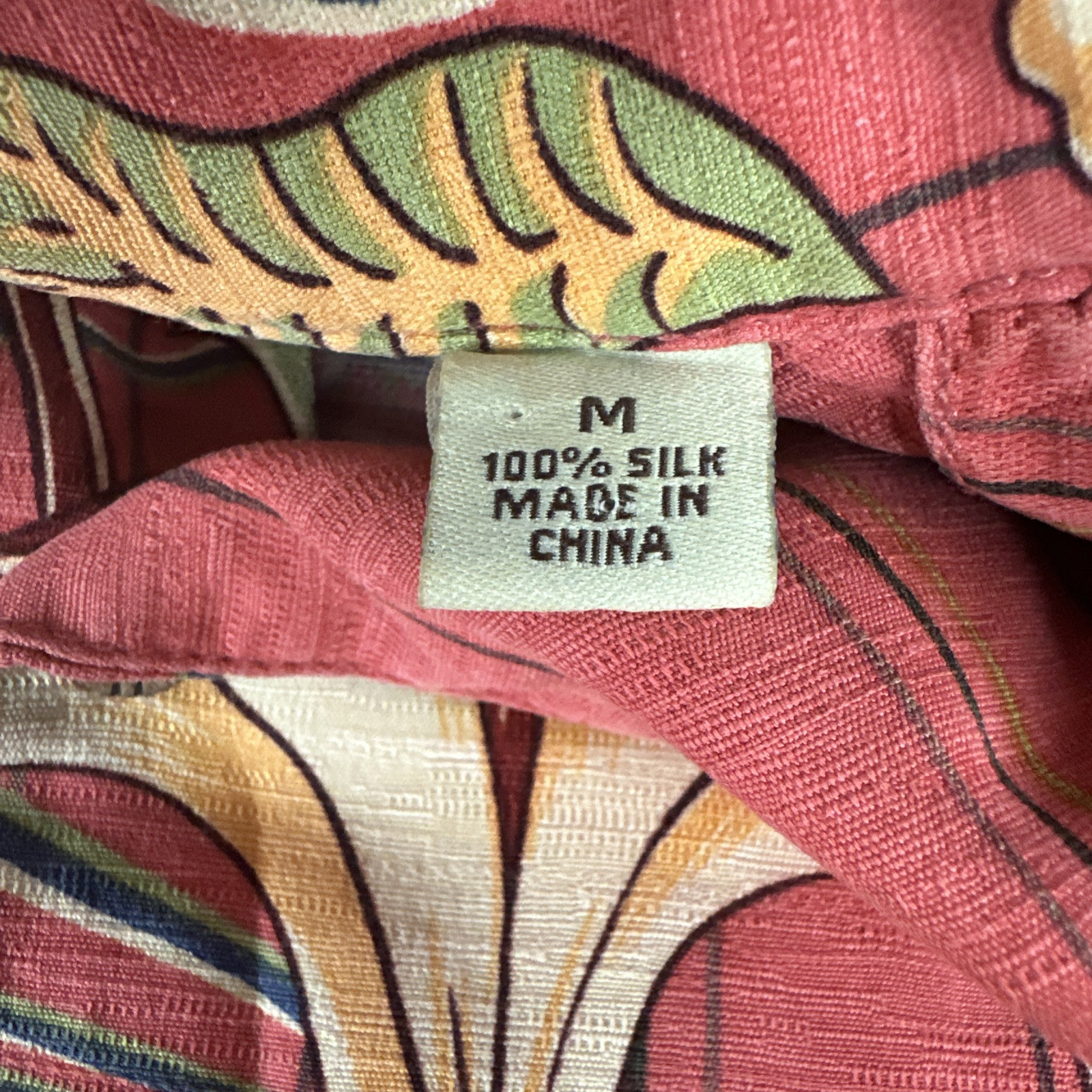 Tommy Bahama Men's 100% Silk Hawaiian Shirt Coral Floral Pink Size Medium