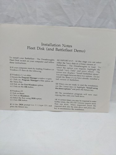 Vintage Battlefleet The Dreadnoughts The Russian Navy Disk Video Game