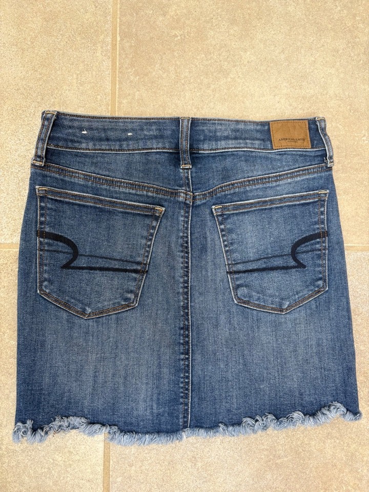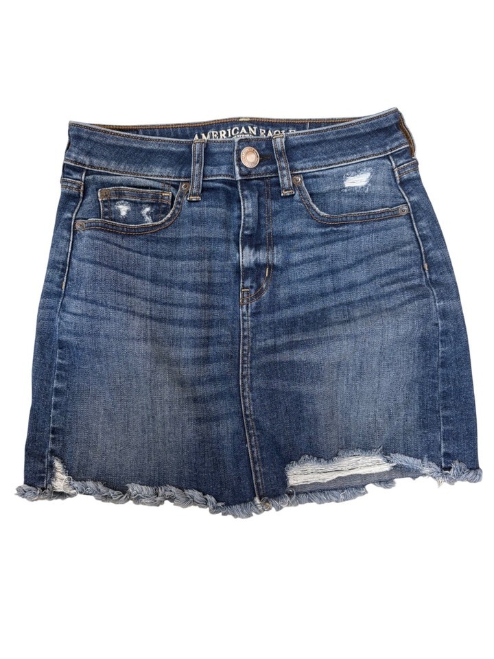 American Eagle Outfitters Distressed Denim Mini Skirt Womens Sz 2 Frayed Festiva