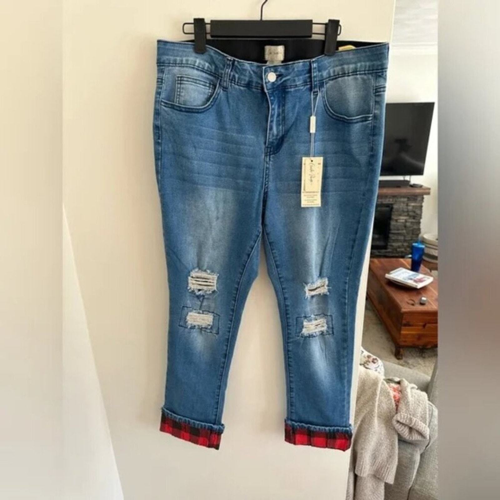 NWT Charlie Paige Distressed Plaid Cuff Jeans – Sizes Small