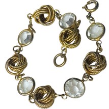 vintage gold tone knotts in cased crystal links bracelet 7.5”