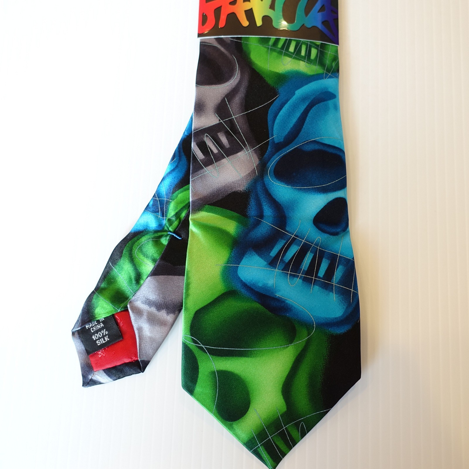 JERRY J GARCIA Black Blue Green Plague Entity Skulls Halloween Silk Classic Tie