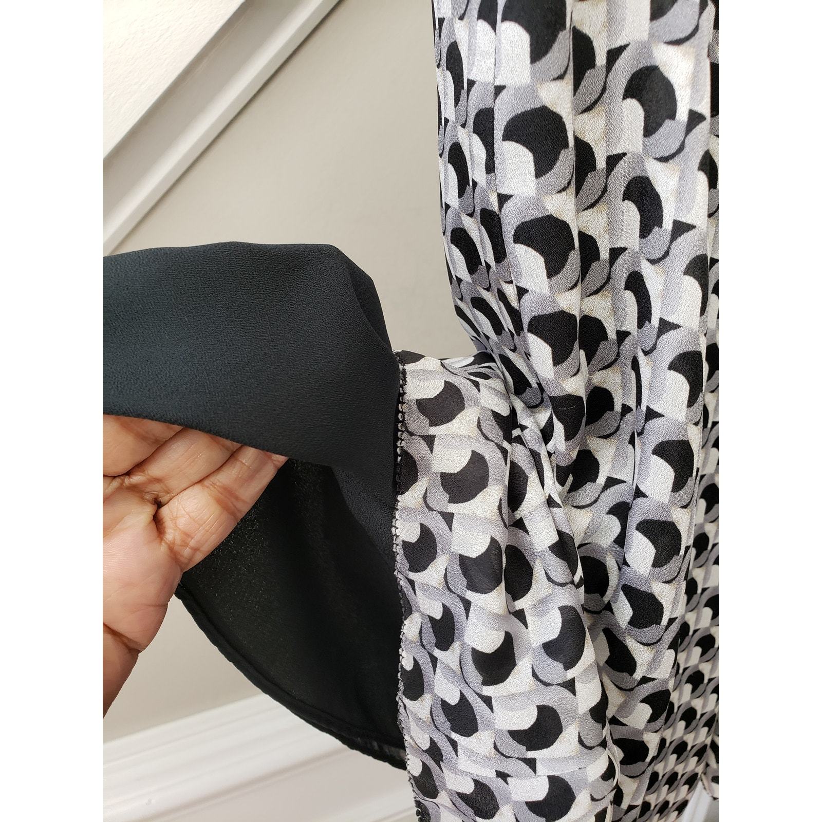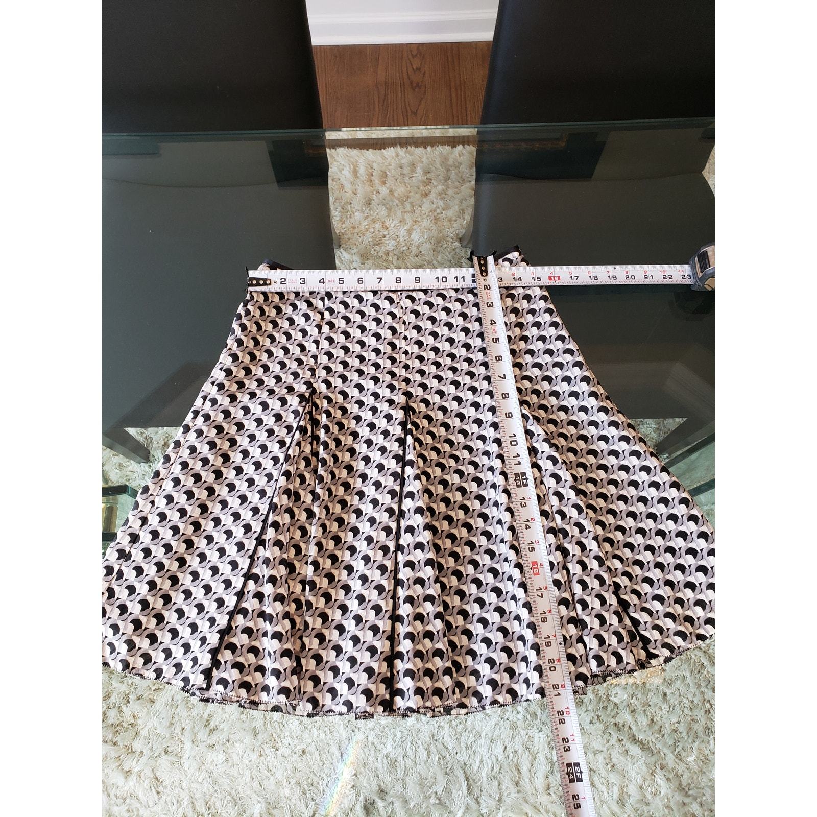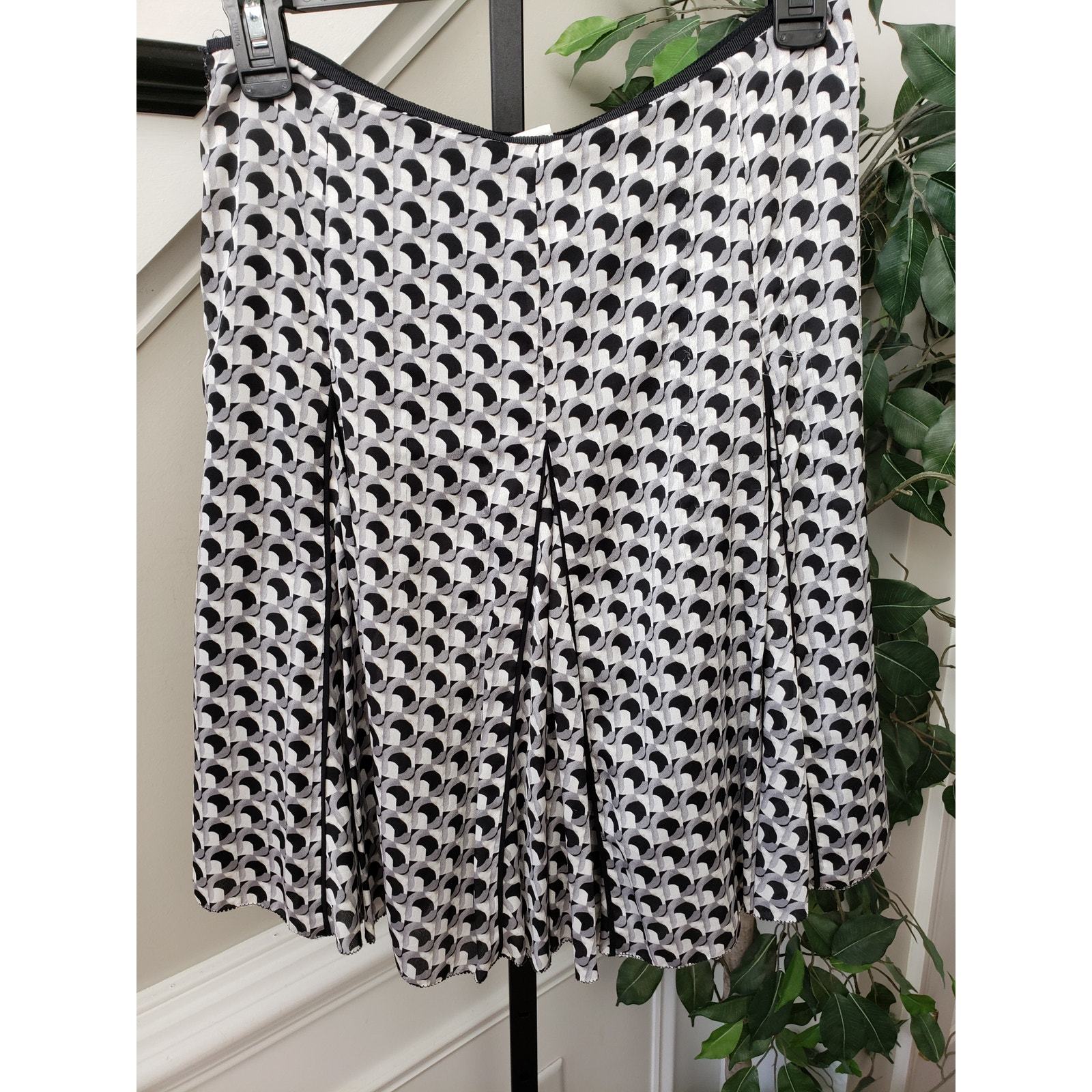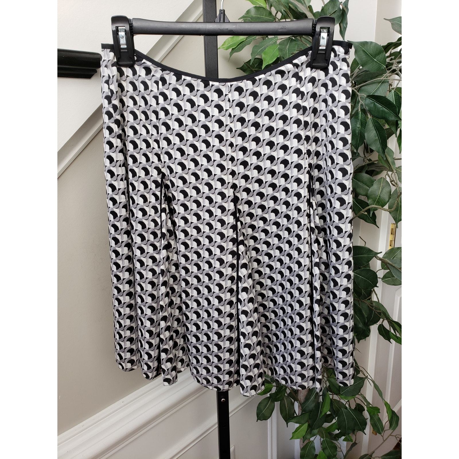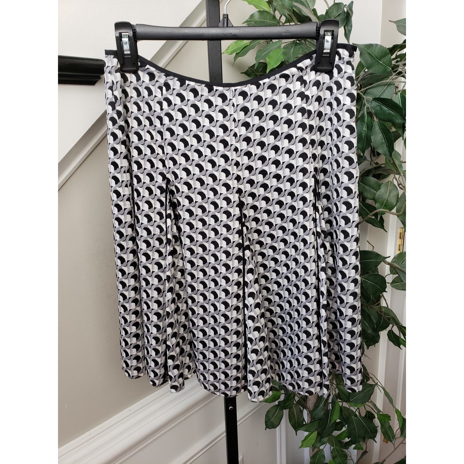 Women's Pleated A-Line Skirt Black White Geometric Print Polyester Size Medium