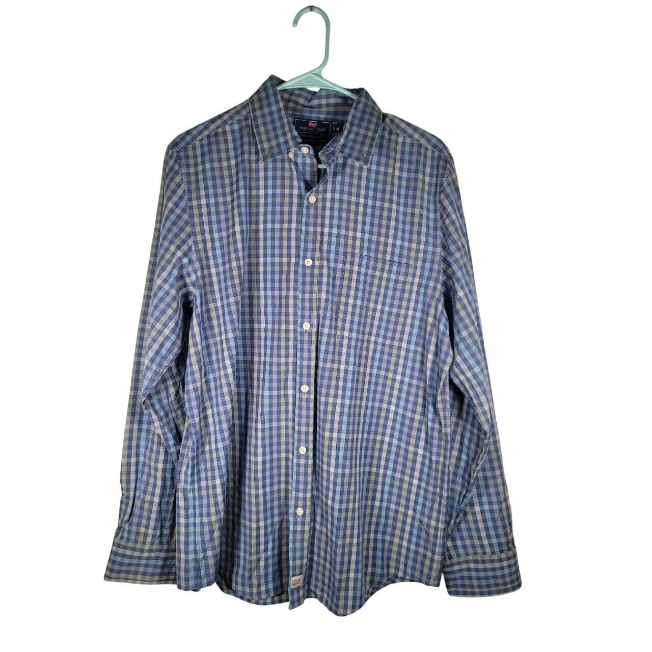Vineyard Vines Shirt Mens Medium Classic Fit Murray Blue Plaid Checks Button Up