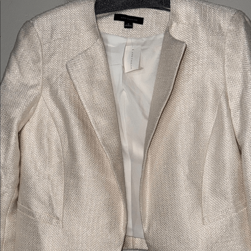 Ann Taylor Cream Blazer with Textured Fabric and Open Front