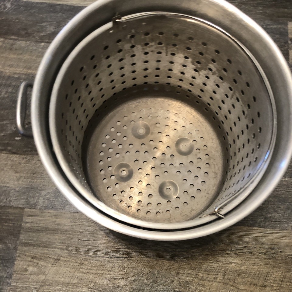 Never been used , but has some scratches and discolorations from storage . Come me with basket and the lid . .