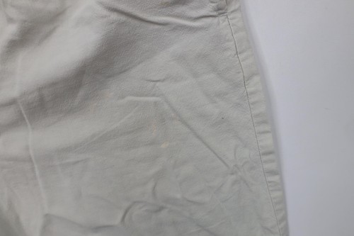Bleach stains front both legs. Color faded. Tag faded