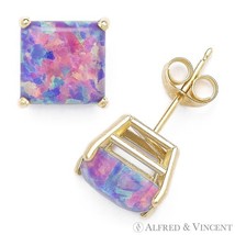 Lavender Square Cabochon Lab-Created Opal 14k Yellow Gold Pushback Stud Earrings