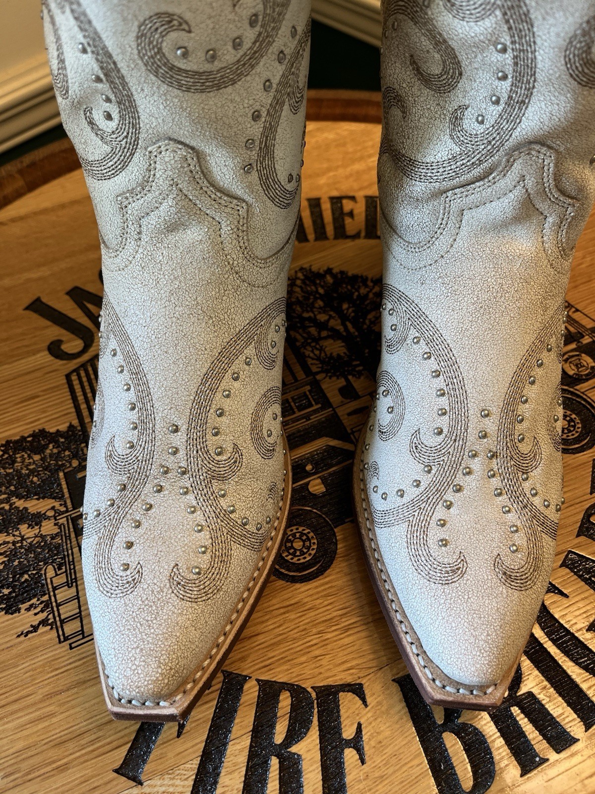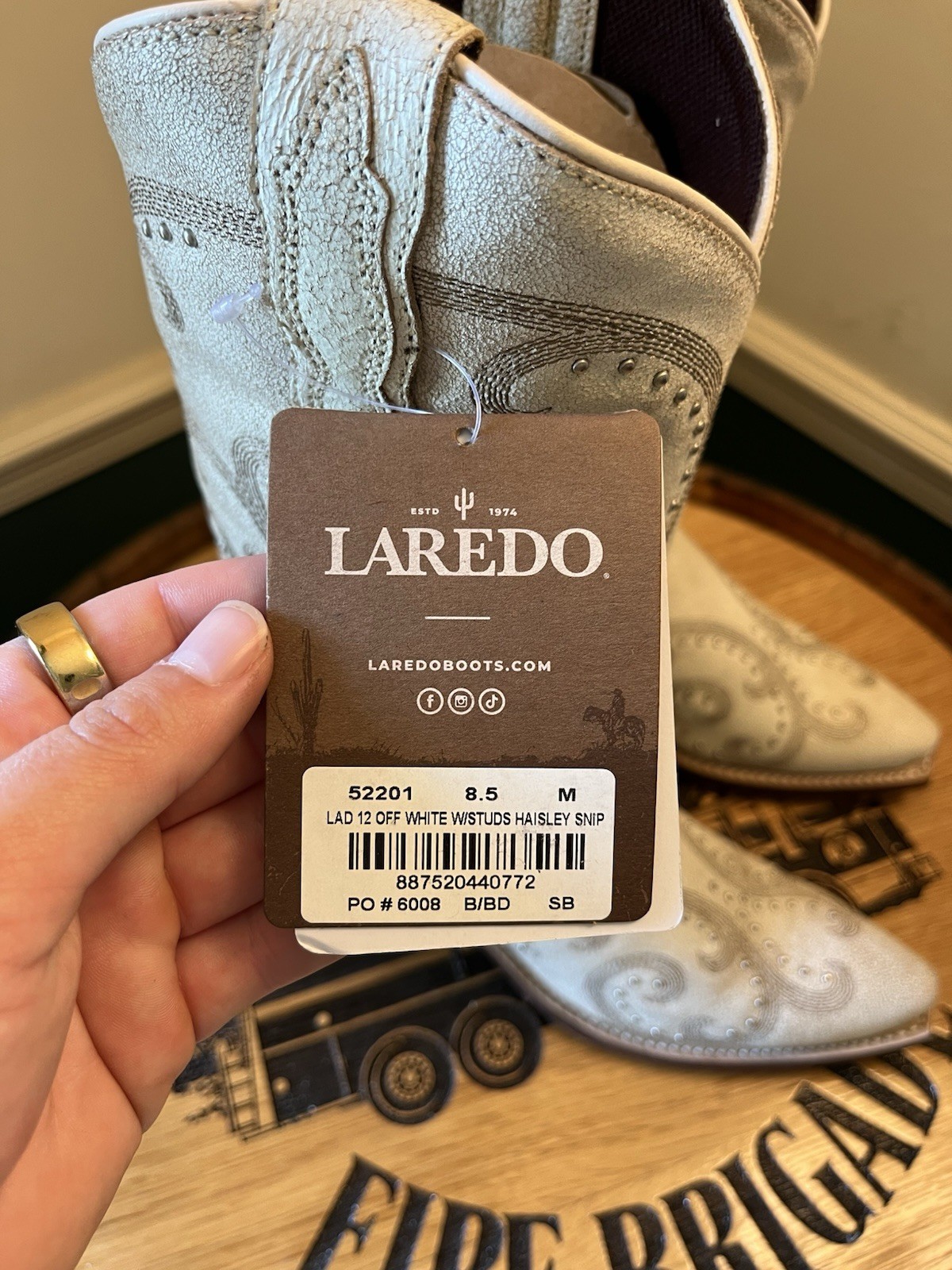 Laredo Women's Haisley Western Cowboy Boot Off White w/ Studs, 52201, sz 8.5