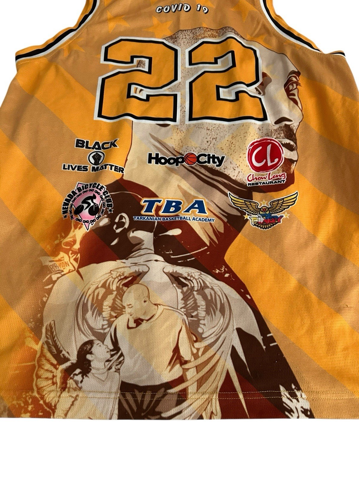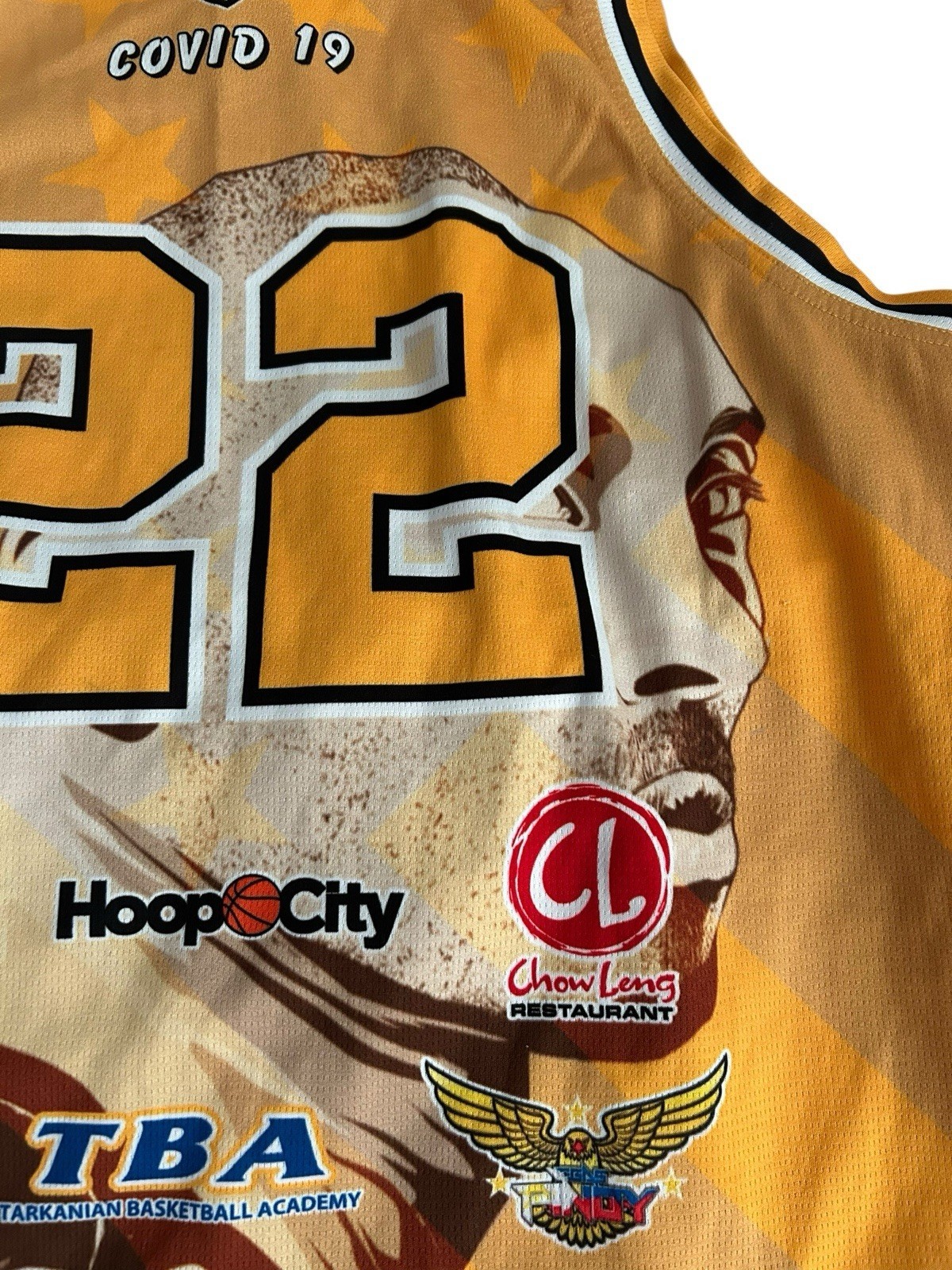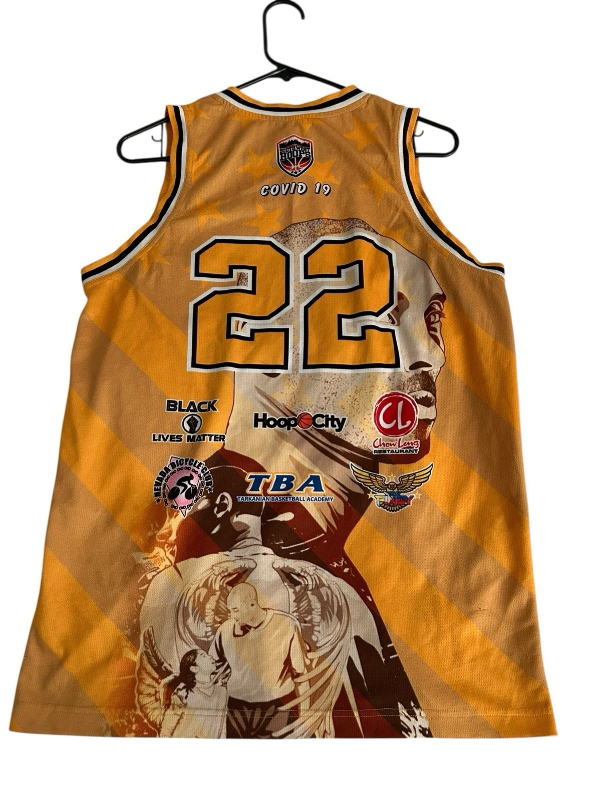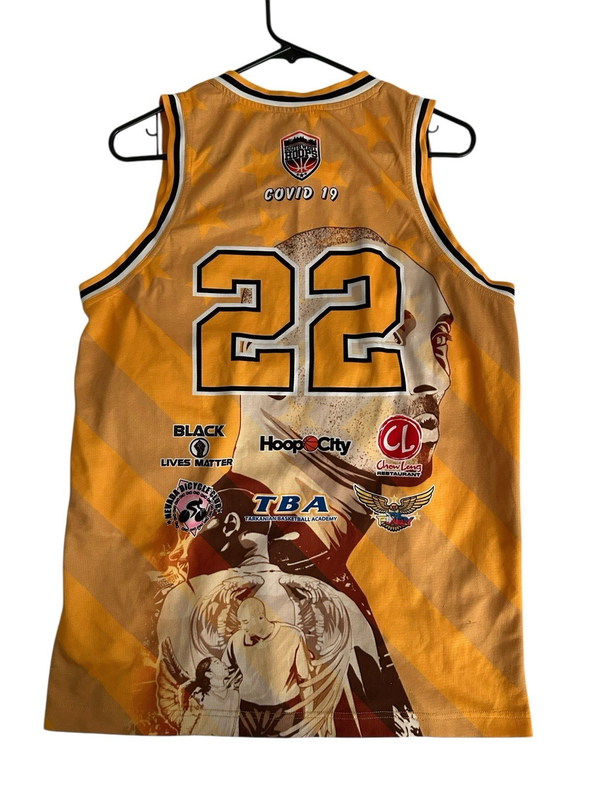 The Southwest Hoops 3 on 3 Tournament Jersey with a unique Kobe Bryant of the Los Angeles Lakers picture is a highly sought-after item for basketball fans. This officially licensed jersey in size M is a rare find for collectors looking to show their support for the NBA legend. The gold color and iconic team logo make it a standout piece of fan apparel for men who appreciate both style and functionality on and off the court.