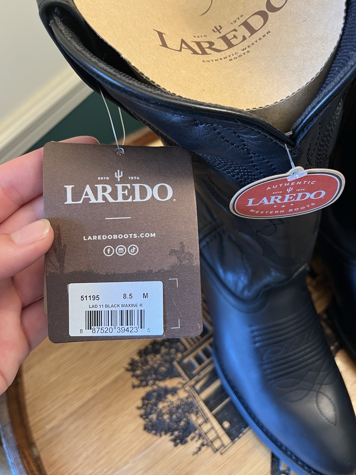 NIB Laredo Women's Maxine Round Toe Western Boots, Black, sz 8.5
