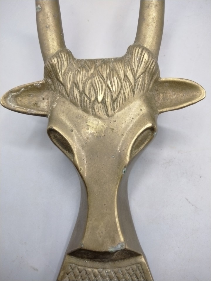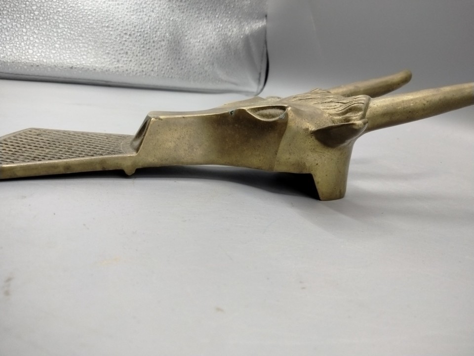 Vintage Solid Brass Longhorn Steer Bull Door Stop Boot Jack Remover Boots 10"