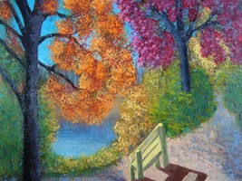 Painting Autumn Original Bob Ross Style Signed Art Fall Leaves Path Carla Dancey